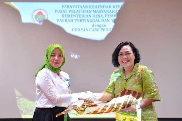 JAKARTA – Pusat Pelatihan Masyarakat, Badan Penelitian dan Pengembangan, Pendidikan dan Pelatihan dan Informasi (Puslatmas Balilatfo) Kementerian Desa, Pembangunan Daerah Tertinggal, dan Transmigrasi (Kemendes PDTT) melakukan Pernyataan Kehendak Kerjasama dengan Yayasan Care Peduli (YCP) tentang peningkatan kapasitas pengelolaan resiko terpadu berperspektif gender dalam perencanaan pembangunan di tingkat masyarakat.