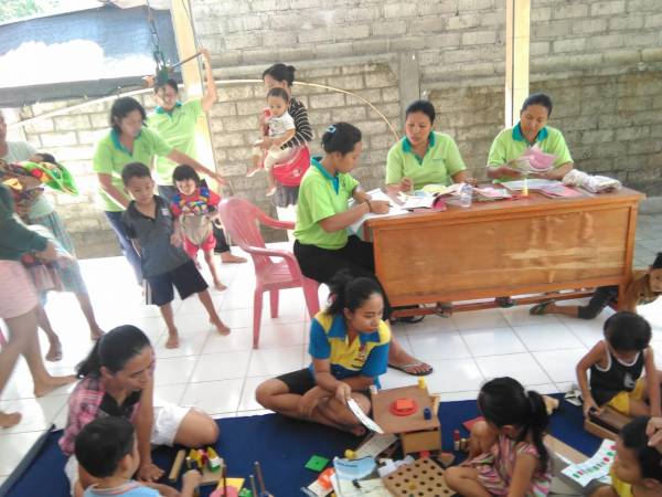memberikan kie kb di kelompok bkb dan posyandu bunda pertiwi banjar dinas benben desa sambirenteng