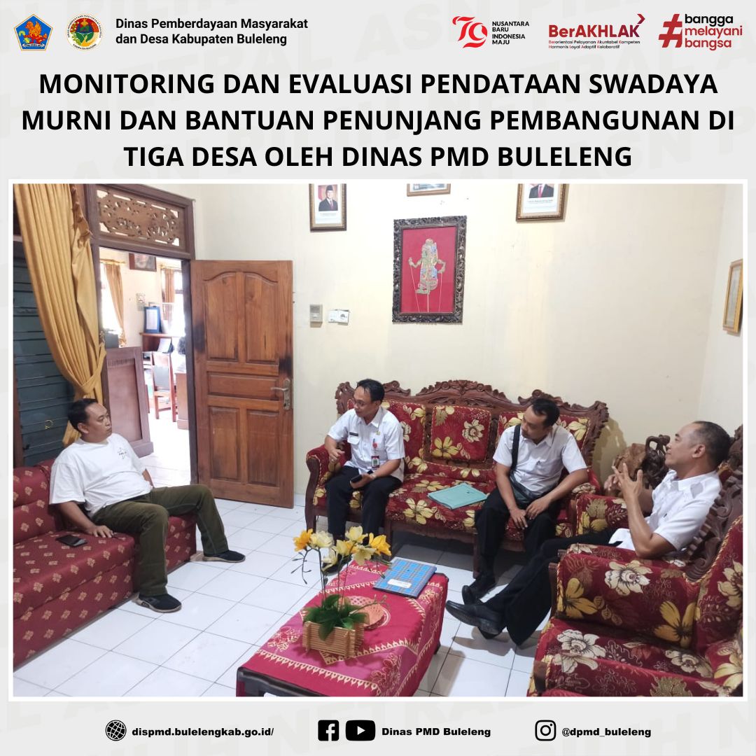 Buleleng, 20 November 2024 – Dinas Pemberdayaan Masyarakat dan Desa (PMD) Kabupaten Buleleng, melalui Bidang Lembaga Kemasyarakatan Desa, Adat, dan Usaha Ekonomi Masyarakat (LKDA-UEM), melaksanakan kegiatan monitoring dan evaluasi (monev) Pendataan Laporan Swadaya Murni dan Bantuan Penunjang Pembangunan. Kegiatan hari ketiga ini dilakukan di Desa Panji (Kecamatan Sukasada), Desa Poh Bergong (Kecamatan Buleleng), dan Desa Pacung (Kecamatan Tejakula), dengan melibatkan Fungsional PSM, Dewa Nyoman Suarjana Putra, didampingi staf.