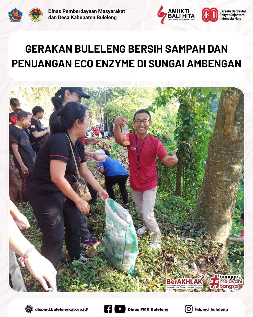 Buleleng, 12 September 2025 - Pemerintah Kabupaten Buleleng menggelar kegiatan Gerakan Buleleng Bersih Sampah dan Penuangan Eco Enzyme di kawasan Sungai Bangkiang Sidem, Jalan Singaraja–Denpasar, Desa Ambengan, Kecamatan Sukasada, Jumat (12/9). Kegiatan ini merupakan rangkaian peringatan World Cleanup Day (WCD) 2025 yang mengusung tema “Menuju Indonesia Bersih 2029.”