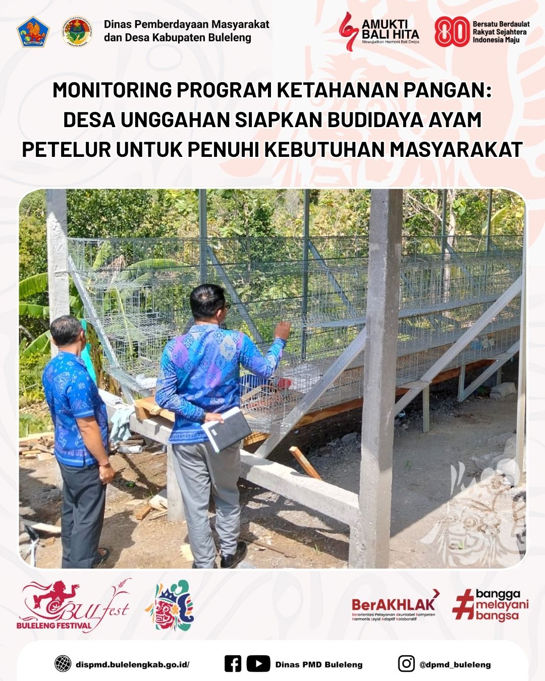 Buleleng, 5 Agustus 2025 - Dinas Pemberdayaan Masyarakat dan Desa (PMD) Kabupaten Buleleng melalui Bidang Pemerintahan Desa (Pemdes) melaksanakan kegiatan monitoring dan evaluasi (monev) pelaksanaan program ketahanan pangan melalui penyertaan modal desa di Desa Unggahan, Kecamatan Seririt.
