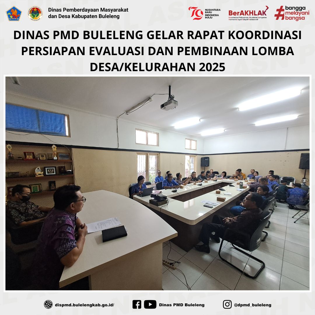 Buleleng, 4 Februari 2025 – Dinas Pemberdayaan Masyarakat dan Desa (PMD) Kabupaten Buleleng melalui Bidang Pemerintahan Desa menyelenggarakan Rapat Koordinasi Persiapan Pelaksanaan Evaluasi Perkembangan Desa/Kelurahan serta Pembinaan Penilaian Perlombaan Desa/Kelurahan Tingkat Kabupaten Buleleng Tahun 2025. Acara berlangsung di Ruang Rapat Dinas PMD Kabupaten Buleleng dan dipimpin oleh Madong Hartono, S.Pd.
