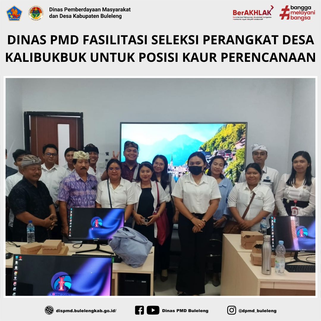 Buleleng, 25 Juni 2025 – Dinas Pemberdayaan Masyarakat dan Desa (PMD) Kabupaten Buleleng melalui Bidang Pemerintahan Desa (Pemdes) kembali memfasilitasi kegiatan Seleksi Penjaringan dan Penyaringan Perangkat Desa, kali ini untuk Desa Kalibukbuk, Kecamatan Buleleng. Pendampingan kegiatan ini diwakili oleh Luh Wartami selaku Analis Desa dan Kelurahan, bersama staf, dan dilaksanakan di Ruang Laboratorium Komputer Dinas Komunikasi, Informatika, Persandian, dan Statistik (Kominfosanti) Kabupaten Buleleng.