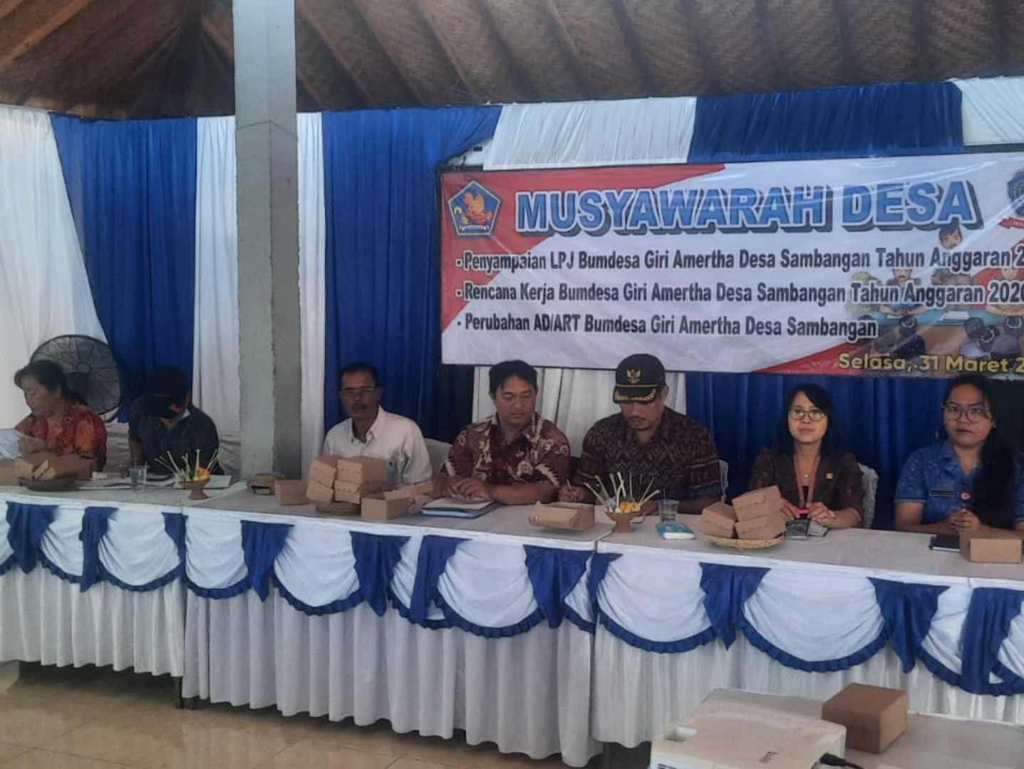 Dinas PMDPPKB Kabupaten Buleleng pada kesempatan ini diwakili oleh Staf Pemerintahan Desa, yakni Putu Radyati Sugiadnyana, SH dan Nova Wardana, SM. Kegiatan turut dihadiri oleh Perbekel Desa Sambangan beserta jajaran, Camat Sukasada, Ketua BPD Desa Sambangan, Direktur BUM Desa Giri Amertha, serta pendamping desa.