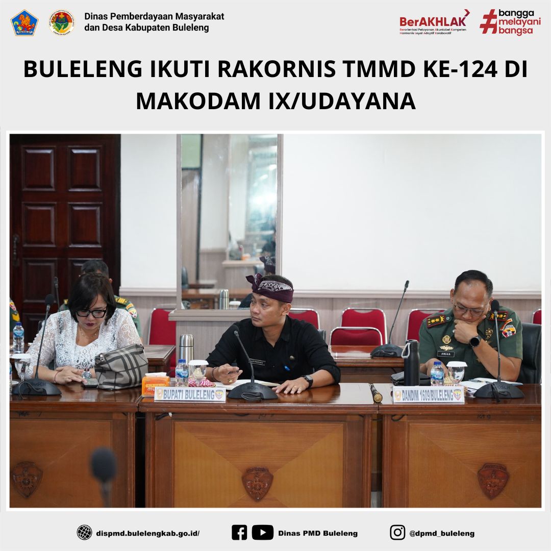 Denpasar, 24 April 2025 — Pemerintah Kabupaten Buleleng menghadiri Rapat Koordinasi Teknis (Rakornis) TNI Manunggal Membangun Desa (TMMD) ke-124 Tahun Anggaran 2025 yang dilaksanakan secara daring dan terpusat di Makodam IX/Udayana, Kamis (24/4). Kegiatan ini merupakan agenda tahunan penting sebagai tahap persiapan pelaksanaan TMMD serentak di seluruh Indonesia.