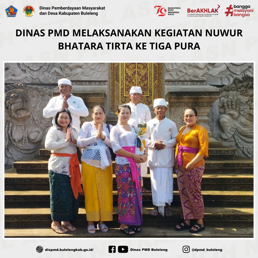 Buleleng, 8 Januari 2025 - Dinas Pemberdayaan Masyarakat dan Desa (Dinas PMD) Kabupaten Buleleng melaksanakan kegiatan nuwur bhatara tirta ke Pura Ponjok Batu, Pura Penegil Dharma, dan Pura Pucak Sinunggal. Kegiatan ini merupakan bagian dari rangkaian pelaksanaan piodalan di Pura Padma Bhuana, Kantor Bupati Buleleng, yang puncaknya akan berlangsung pada 14 Januari 2025.
