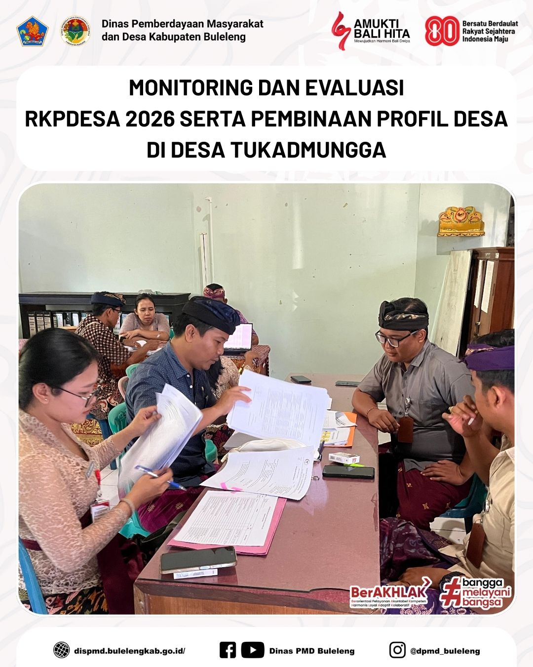 Melalui kegiatan Monev ini, diharapkan Desa Tukadmungga dapat segera menyempurnakan dokumen RKPDesa dan Profil Desa, sehingga menjadi dasar yang kuat bagi perencanaan pembangunan desa tahun 2026.