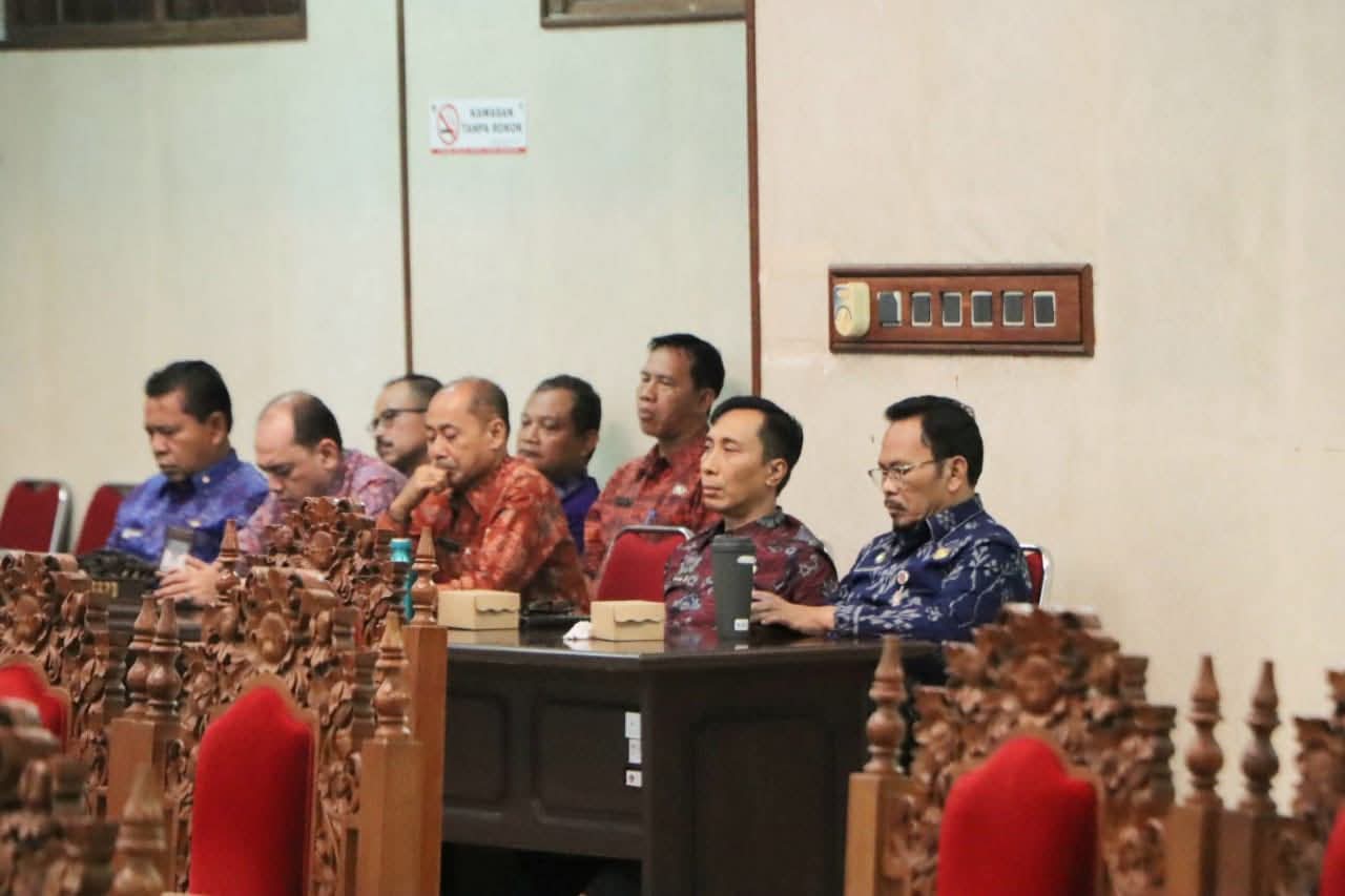 Sebelum membacakan tanggapan atas masukan dan pandangan umum dari seluruh Fraksi DPRD Kabupaten Buleleng, Wabup Supriatna menyampaikan apresiasi dan terima kasih kepada seluruh Fraksi DPRD yang telah sepakat untuk melanjutkan pembahasan Ranperda ke tahap berikutnya.