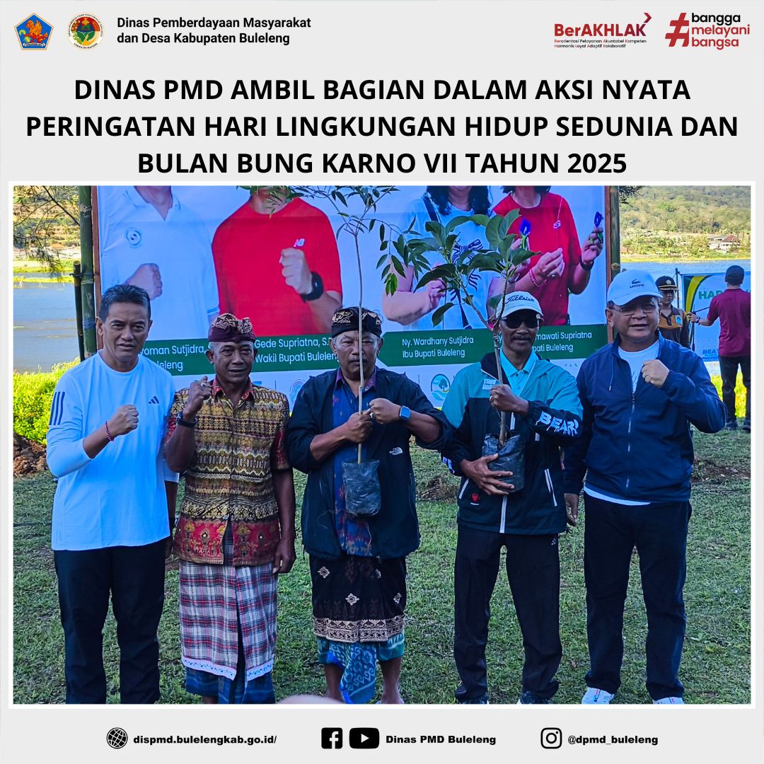 Buleleng, 5 Juni 2025 – Dalam rangka memperingati Hari Lingkungan Hidup Sedunia Tahun 2025 yang mengusung tema “Ending Plastic Pollution” (Hentikan Polusi Plastik) serta dirangkaikan dengan pelaksanaan Bulan Bung Karno VII Tahun 2025, Dinas Pemberdayaan Masyarakat dan Desa (PMD) Kabupaten Buleleng turut ambil bagian dalam rangkaian kegiatan yang dilaksanakan oleh Dinas Lingkungan Hidup Kabupaten Buleleng, Rabu (5/6), bertempat di Area Parkir Pura Ulun Danu Buyan, Desa Pancasari.