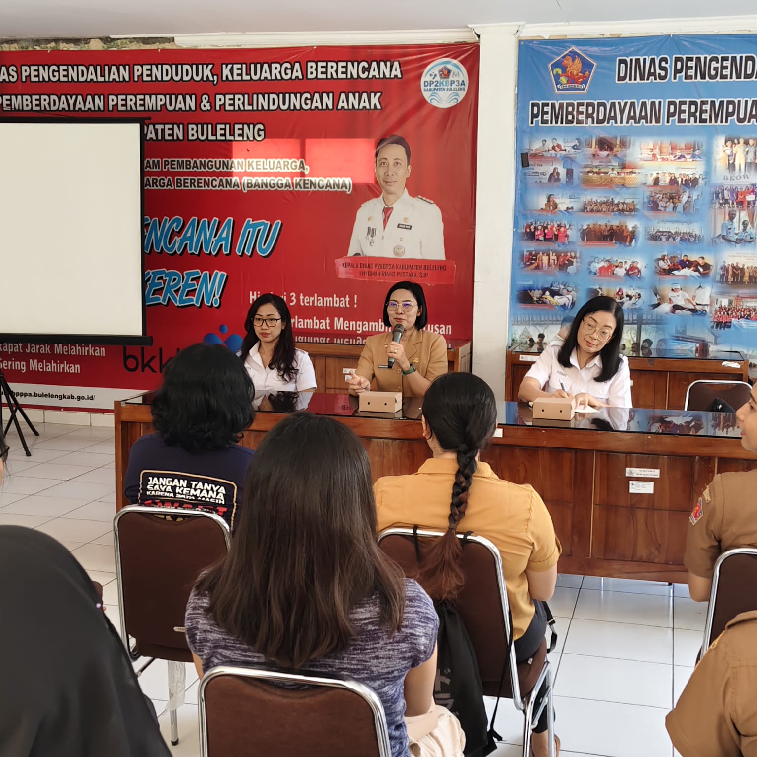 Kepala Bid. Keluarga Berencana Ketahanan dan Kesejahteraan Keluarga Bdn. NYOMAN MANDAYANI, SST.Keb , M.A.P membuka pertemuan kegiatan Permohonan Fasilitasi Peserta Evaluasi Pasca Orientasi TPK Tk. Kecamatan dan dilanjukan arahan sakaligus pemateri oleh Perwakilan BKKBN Provinsi Bali yang dilaksanakan di Aula Dinas P2KBP3A Kabupaten Buleleng