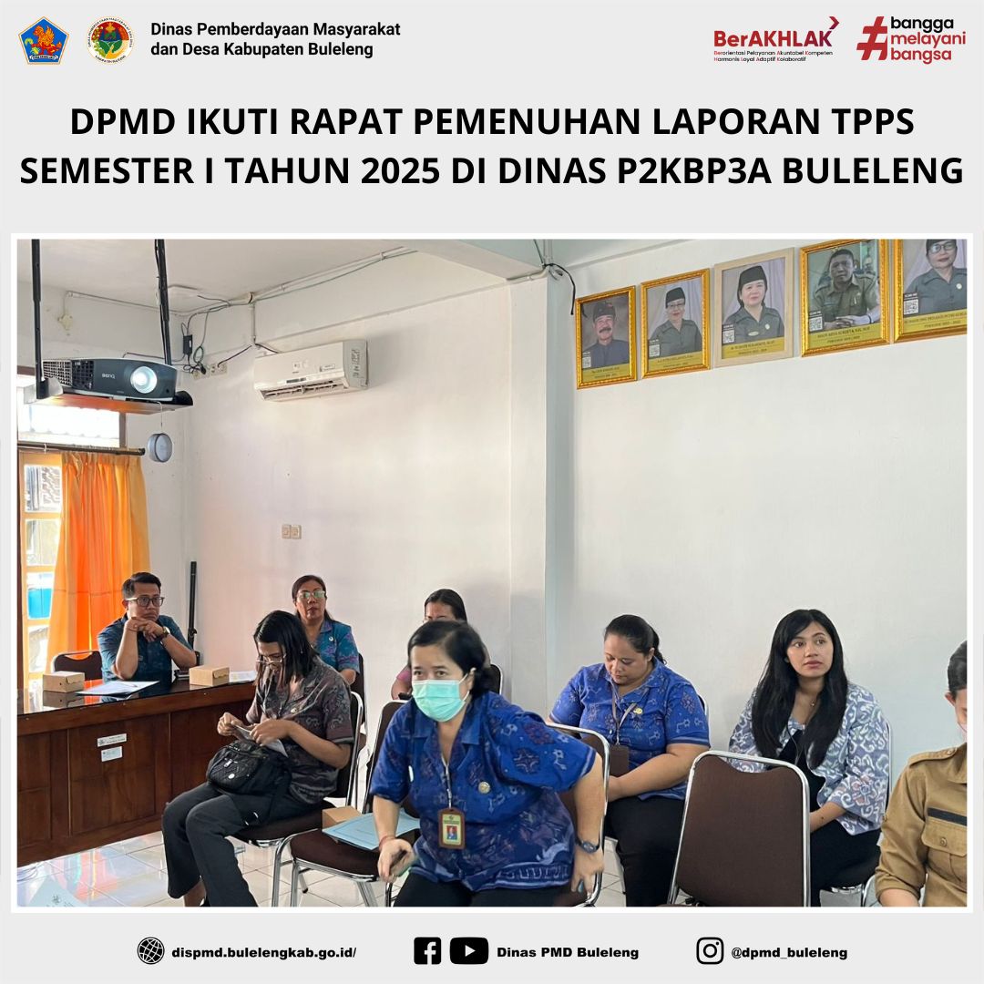 Buleleng, 15 Juli 2025 - Dinas Pemberdayaan Masyarakat dan Desa (DPMD) Kabupaten Buleleng melalui Staf Bidang Lembaga Kemasyarakatan Desa, Adat dan Usaha Ekonomi Masyarakat (LKDA UEM) menghadiri rapat “Pemenuhan Laporan Tim Percepatan Penurunan Stunting (TPPS) Semester I Tahun 2025” yang berlangsung di ruang rapat Dinas P2KBP3A Kabupaten Buleleng.
