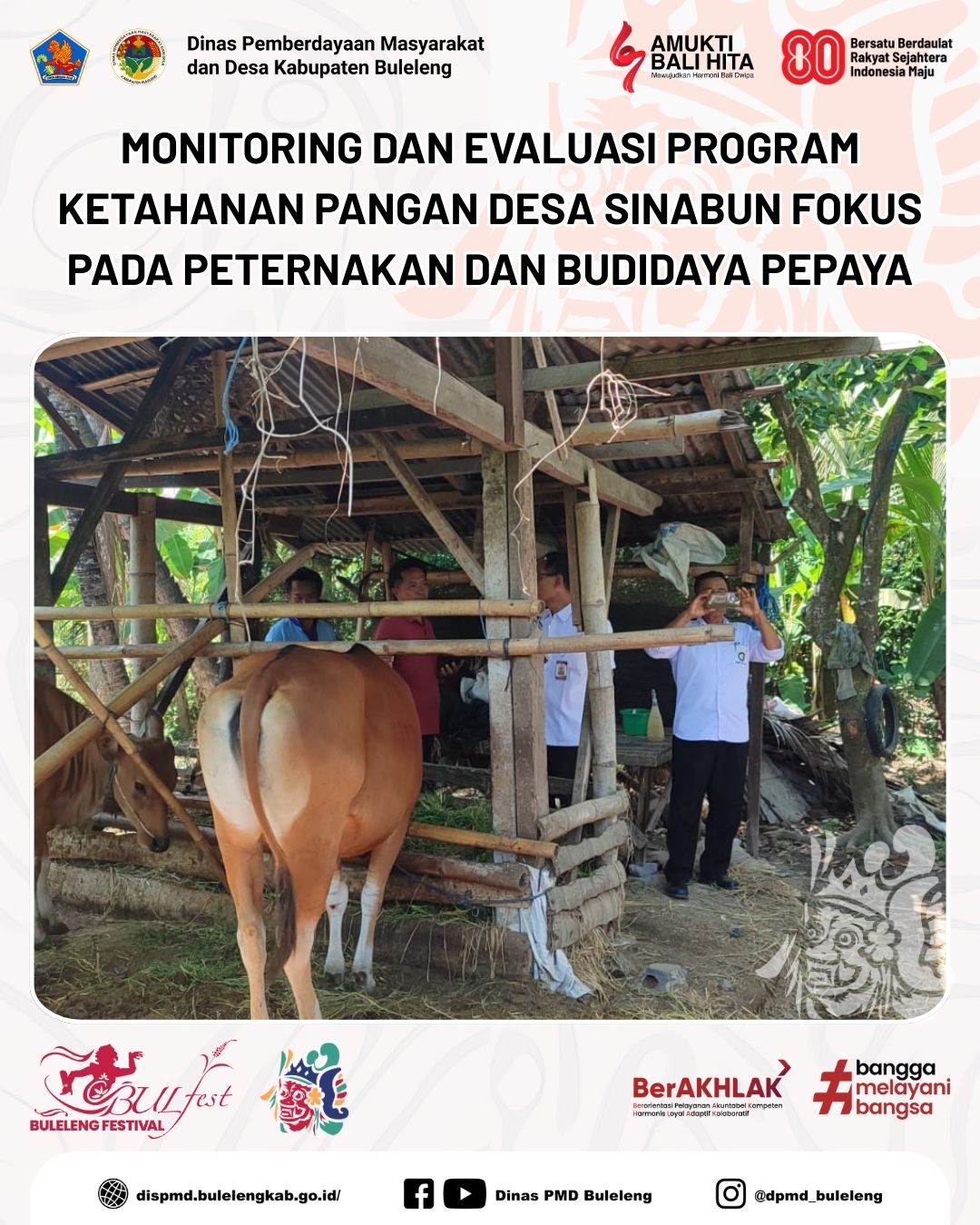 Buleleng, 13 Agustus 2025 - Dinas Pemberdayaan Masyarakat dan Desa (PMD) Kabupaten Buleleng melalui Bidang Pemerintahan Desa (Pemdes) melaksanakan kegiatan pembinaan, monitoring, dan evaluasi pelaksanaan program ketahanan pangan desa melalui skema penyertaan modal ke Badan Usaha Milik Desa (BUM Desa) Sari Guna Amertha Desa Sinabun. Kegiatan ini berlangsung di Kantor Perbekel Desa Sinabun, Kecamatan Sawan.