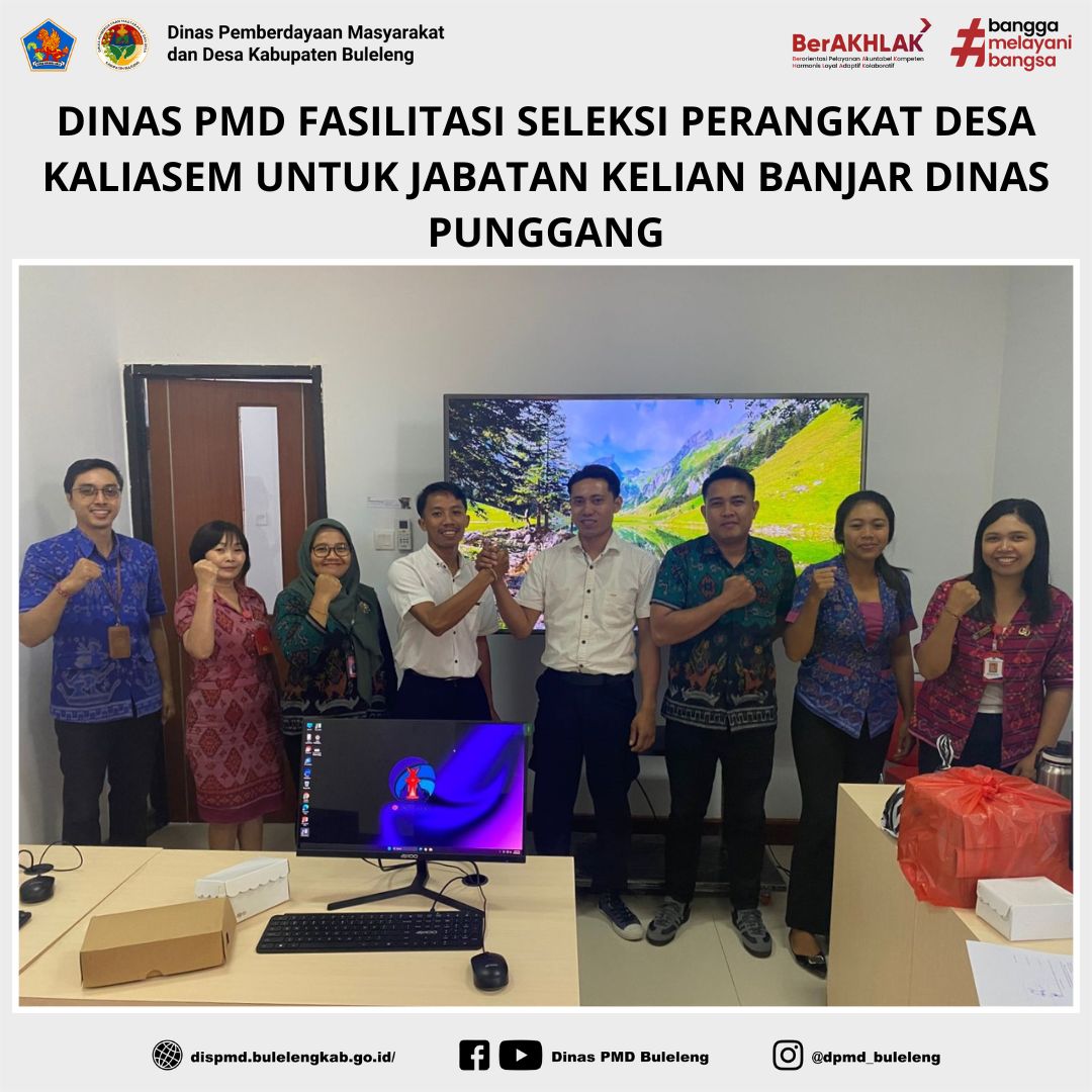 Dalam kegiatan tersebut, Dinas PMD diwakili oleh Luh Wartami selaku Analis Desa dan Kelurahan bersama staf. Seleksi ini turut dihadiri oleh Staf Kasi Pemerintahan Kecamatan Banjar, tim penguji dari Kominfosanti, Perangkat Desa Kaliasem, serta Panitia Penjaringan dan Penyaringan Perangkat Desa Kaliasem.