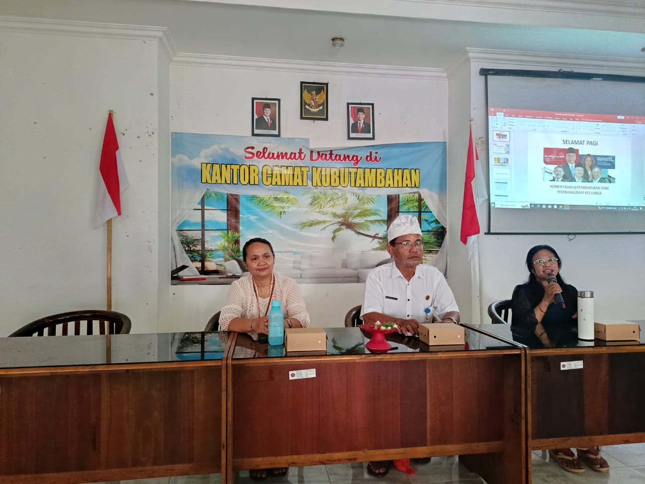 Kegiatan ini dipimpin/koordinir langsung oleh Sekcam Kec. Kubutambahan di dampingi Pejabat Substansional Pengendalian Penduduk Penyuluhan dan Penggerakan Dinas P2KBP3A Kabupaten Buleleng serta dihadiri Pengurus TP PKK Kecamatan, Pengurus TP PKK Desa Petugas Lapangan KB Non ASN, Kader TPK (Nakes, Kader KB, Kader PKK) dan tamu undangan terkait lainnya di Kecamatan Kubutambahan.