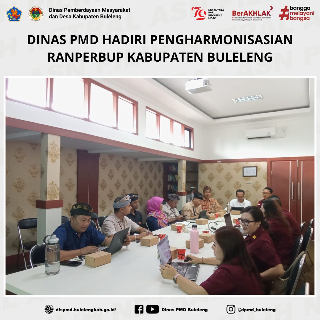 Buleleng, 6 Maret 2025 – Dinas Pemberdayaan Masyarakat dan Desa (PMD) Kabupaten Buleleng, yang diwakili oleh Fungsional Penggerak Swadaya Masyarakat (PSM) Bidang Penataan dan Kerjasama Desa (PKD), Ngurah Putu Adnyana, menghadiri rapat pengharmonisasian Rancangan Peraturan Bupati (Ranperbup) Kabupaten Buleleng. Kegiatan ini berlangsung di Ruang Rapat Sekretariat Daerah Kabupaten Buleleng, Kamis (6/3).