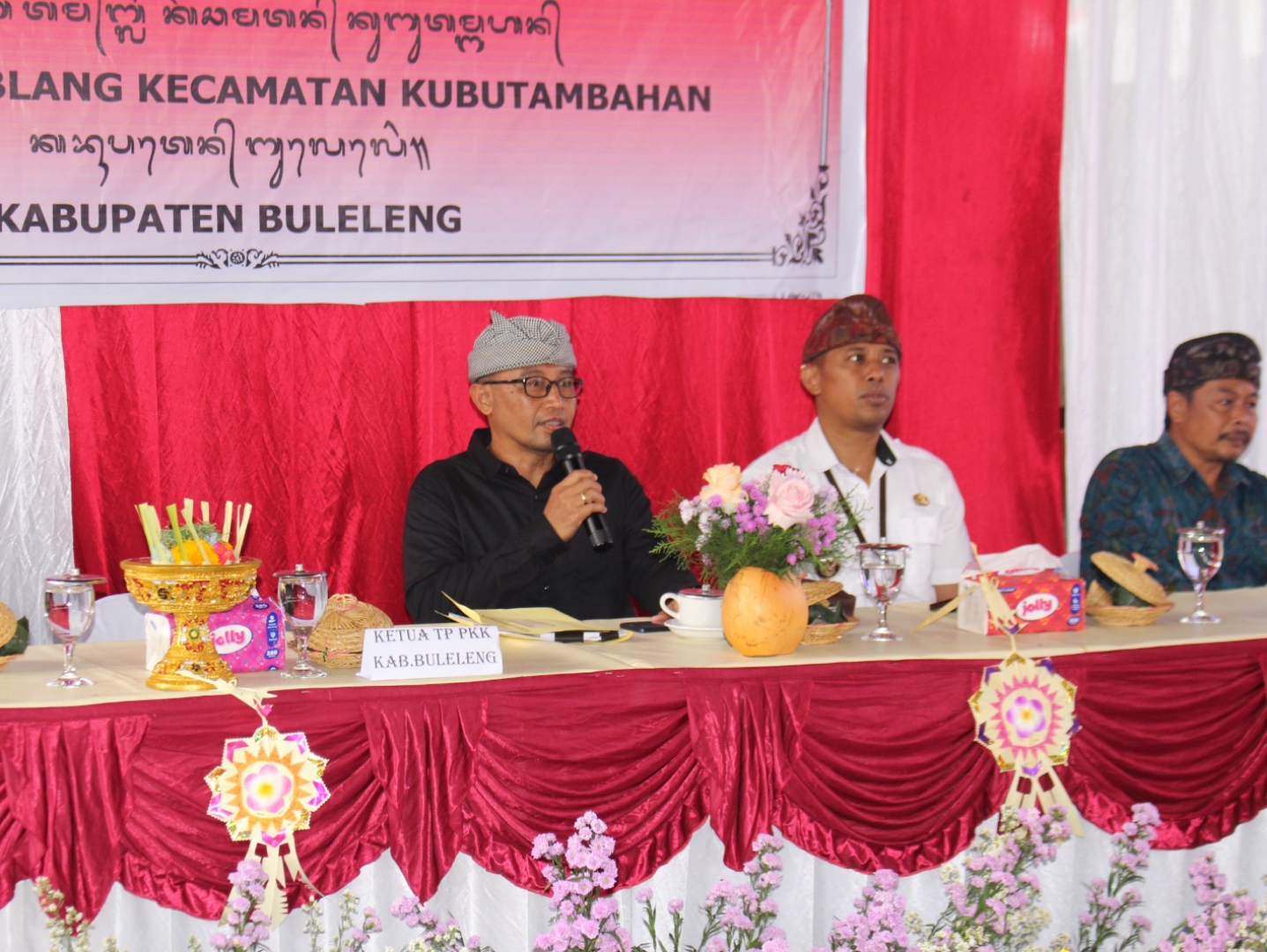 Kegiatan kemudian dilanjutkan dengan sambutan oleh Sekretaris Tim Penggerak PKK Kabupaten Buleleng, Ny. Hermawati Supriatna yang menyampaikan ucapan terima kasih kepada seluruh pihak Pemerintah Desa Tamblang yang telah menerima TP PKK Kabupten Buleleng serta seluruh Tim Kabupaten Buleleng dengan penuh rasa kebersamaan dan kekeluargaan. Dalam kesempatan ini juga Ny. Hermawati Supriatna menyampaikan beberapa hal yang menjadi fokus bersama yakni terkait dengan Gerakan Kul-Kul PKK, Implementasi 6 SPM Posyandu, serta upaya penggulangan stunting. Dalam kesempatan ini pula Ny. Hermawati Supriatna menyampaikan selamat menunaikan ibadah puasa bagi umat yang menjalankan.