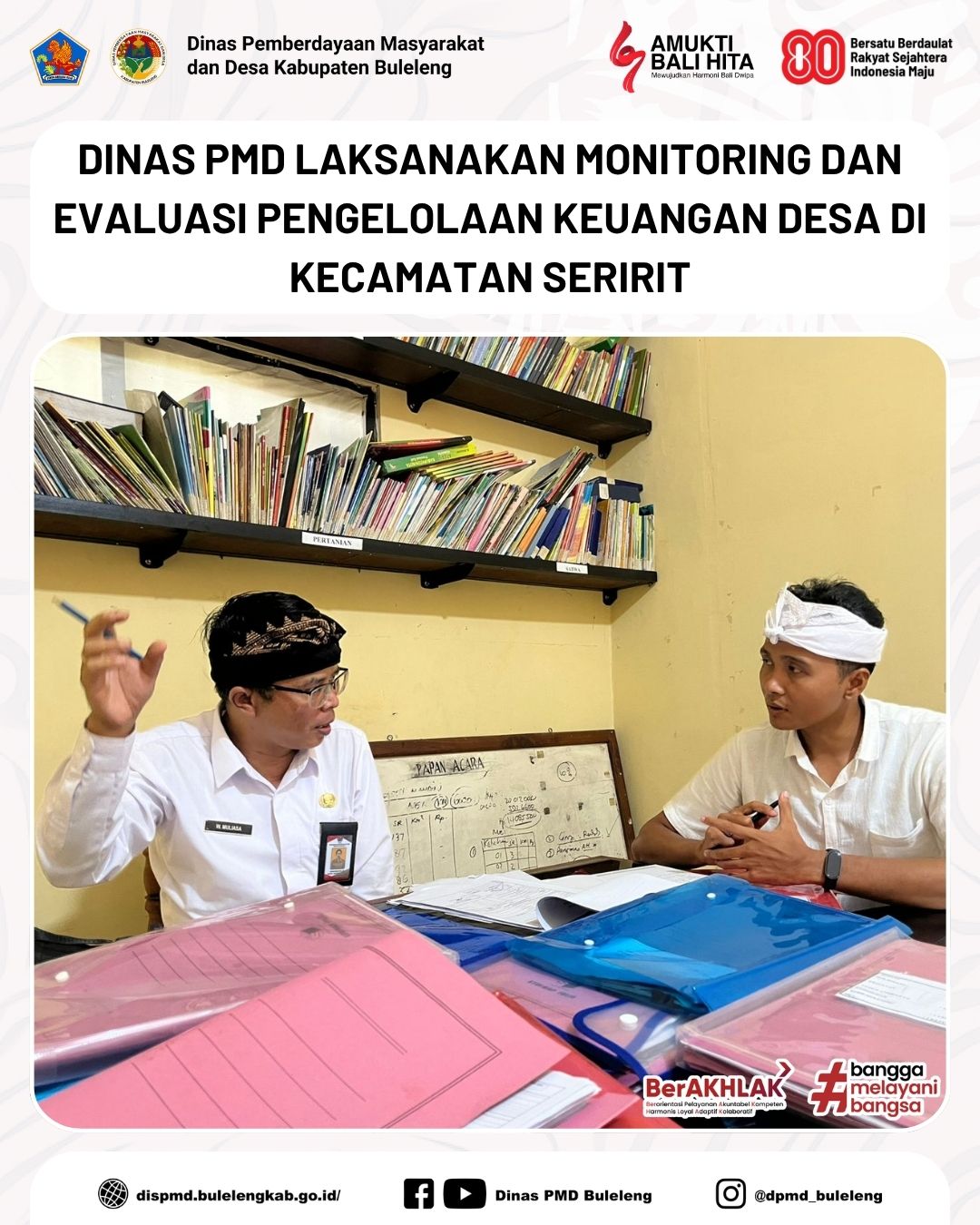 Buleleng, 5 November 2025 - Dinas Pemberdayaan Masyarakat dan Desa (PMD) Kabupaten Buleleng melalui Bidang Pemerintahan Desa (Pemdes) kembali melaksanakan kegiatan Monitoring dan Evaluasi (Monev) Pengelolaan Keuangan Desa Tahun 2025, dengan fokus pada pengadaan barang dan jasa di Desa Rangdu dan Desa Kalianget, Kecamatan Seririt.