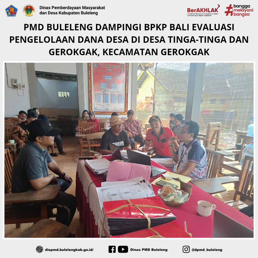 Buleleng, 17 Mei 2025 — Dinas Pemberdayaan Masyarakat dan Desa (PMD) Kabupaten Buleleng melalui Kepala Bidang Pemerintahan Desa, Madong Hartono, bersama staf mendampingi tim Badan Pengawasan Keuangan dan Pembangunan (BPKP) Perwakilan Provinsi Bali dalam kegiatan evaluasi pengelolaan keuangan desa di dua wilayah, yakni Desa Tinga-tinga dan Desa Gerokgak, Kecamatan Gerokgak.