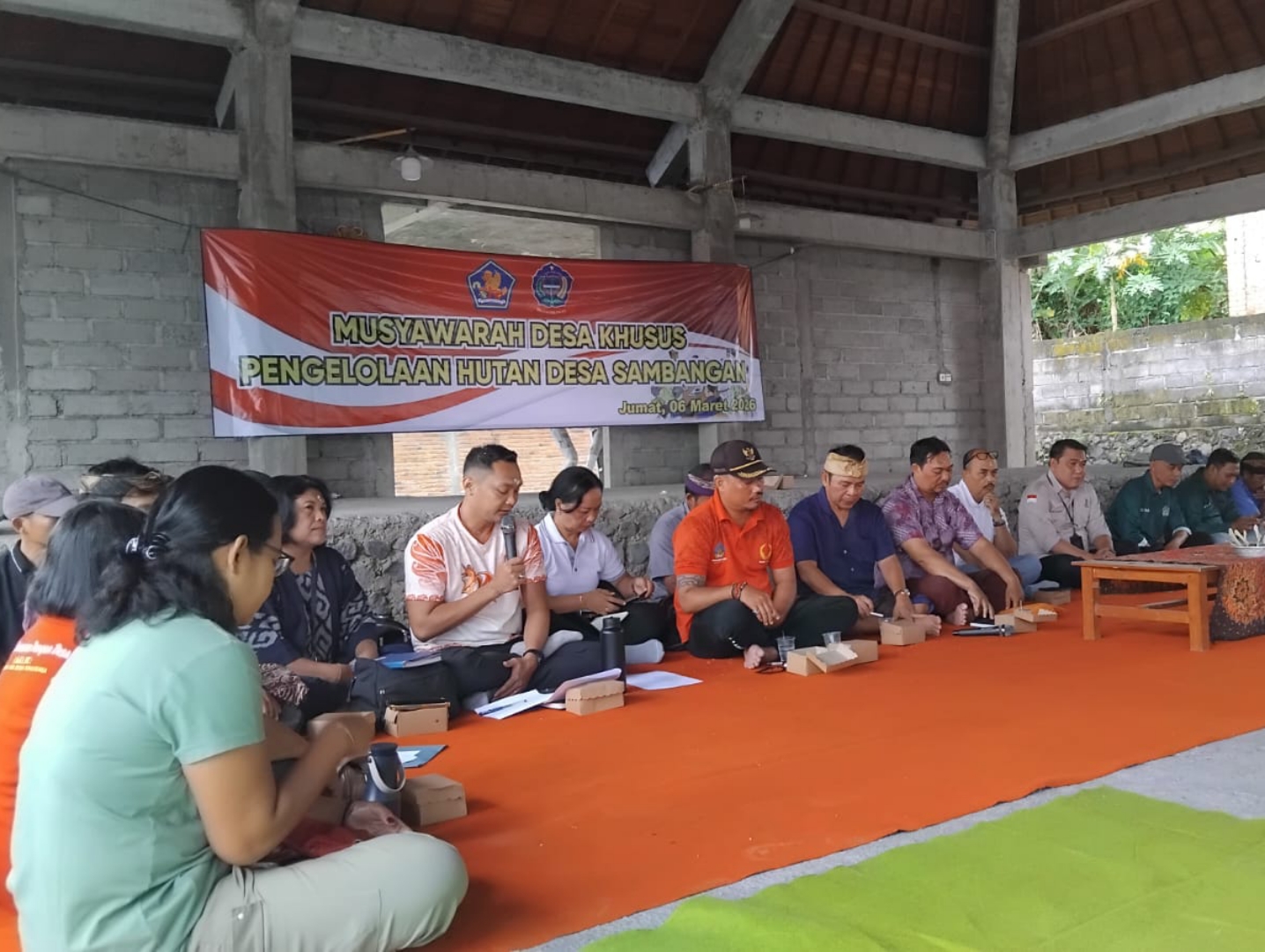 Jumat, 6 Maret 2026, Dinas Pemberdayaan Masyarakat dan Desa, Pengendalian Penduduk dan Keluarga Berencana (DPMDPPKB) melalui Bidang Penataan dan Kerjasama Desa, Menghadiri Kegiatan Musdes Khusus Pengelolaan Hutan Desa Bertempat di Wantilan Desa Sambangan Kecamatan Sukasada.