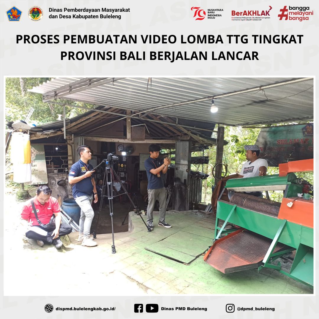 Buleleng, 13 Februari 2025 – Dinas Pemberdayaan Masyarakat dan Desa (PMD) Kabupaten Buleleng melalui Bidang Lembaga Kemasyarakatan Desa, Adat, dan Usaha Ekonomi Masyarakat (LKDA-UEM) melaksanakan proses pembuatan video untuk Lomba Teknologi Tepat Guna (TTG) Tingkat Provinsi Bali Tahun 2025. Kegiatan ini berlangsung di Banjar Dinas Dauh Pangkung, Desa Umejero, Kecamatan Busungbiu.
