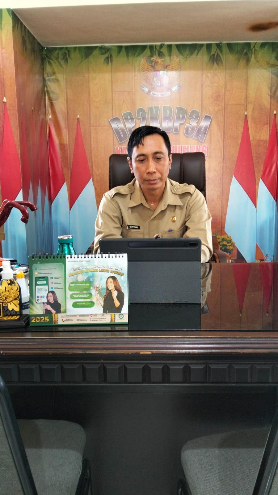 Kepala Dinas P2KBP3A Kabupaten Buleleng, I Nyoman Riang Pustaka beserta Kabid PHPA, Kabid PPP dan pejabat fungsional mengikuti Zoom Meeting tentang Rapat Koordinasi Pengembangan RBI (Ruang Bersama Indonesia)