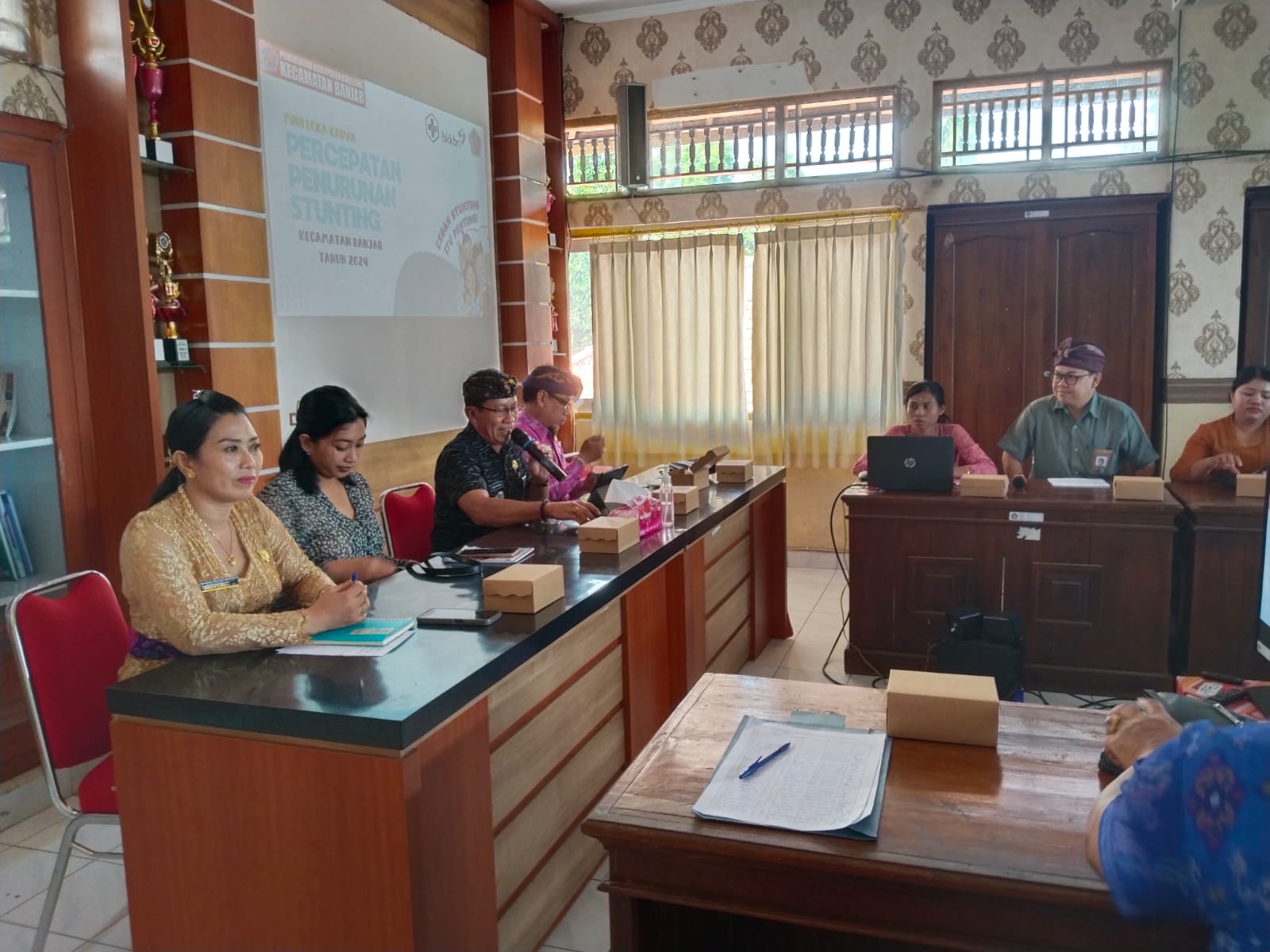Bertempat di Kecamatan Banjar Dinas P2KBP3A Kabupaten Buleleng melaksanakan kegiatan Mini Loka Karya Tingkat Kecamatan yang dilaksanakan di Gedung Serba Guna Kecamatan Banjar dalam rangka upaya pencegahan Stunting yang bersifat multidimensional maka diperlukan adanya jaminan bahwa semua target sasaran prioritas program dapat mengakses dan memanfaatkan sejumlah layanan secara lengkap dan optimal. Untuk hal tersebut maka dilakukan evaluasi pelaksanaan pendampingan keluarga dan hasil pemantauan pendampingan keluarga di tingkat kecamatan agar tujuan Strategi Nasional Percepatan Penurunan Stunting sesuai dengan Peraturan Badan Kependudukan dan Keluarga Berencana Nasional Republik Indonesia No.13 Tahun 2023 tentang Petunjuk Teknis Penggunaan Dana Bantuan Operasional Keluarga Berencana Tahun Anggaran 2024. Dimana perlu mengawal dan mengevaluasi pelaksanaan pendampingan keluarga hasil dari pelaksanaan dan pemantauan pendampingan keluarga ditingkat kecamatan, serta pembinaan Tim Pendamping Keluarga (TPK) agar terwujudnya 3 standar yaitu TPK yang terlatih, Tersedia Alat Ukur/Aplikasi Pengukuran untuk sasaran Stunting dan Tersedia serta terlaksananya prosedural operasional percepatan penurunan stunting serta terwujudnya 4 PASTI yaitu memastikan semua sasaran terdata, memastikan semua sasaran memperoleh pelayanan, memastikan semua sasaran memanfaatkan intervensi dari pelayanan dan memastikan semua pelaksanaan dan pendampingan tercatat dan terlaporkan.