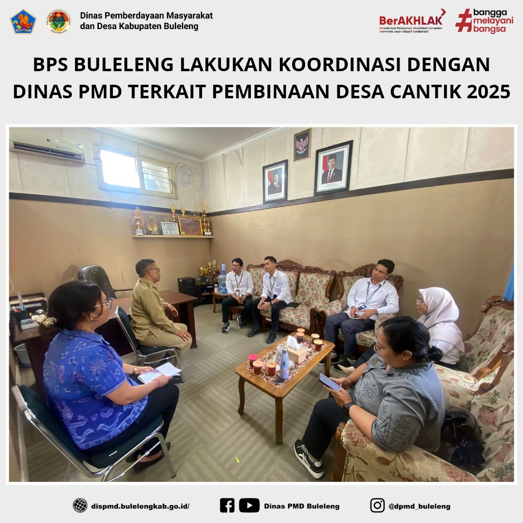 Buleleng, 6 Mei 2025 – Dalam rangka persiapan pelaksanaan Lomba Desa Cinta Statistik (Desa Cantik) tahun 2025, Badan Pusat Statistik (BPS) Kabupaten Buleleng melakukan kunjungan koordinasi ke Dinas Pemberdayaan Masyarakat dan Desa (PMD) Kabupaten Buleleng, Selasa (6/5).