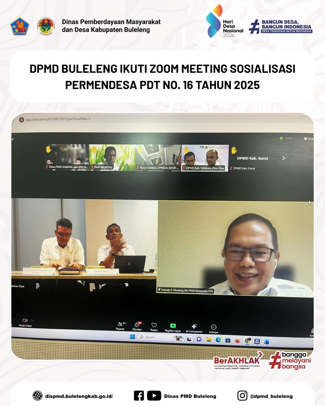 Pemberdayaan Masyarakat dan Desa (PMD) Kabupaten Buleleng mengikuti Zoom