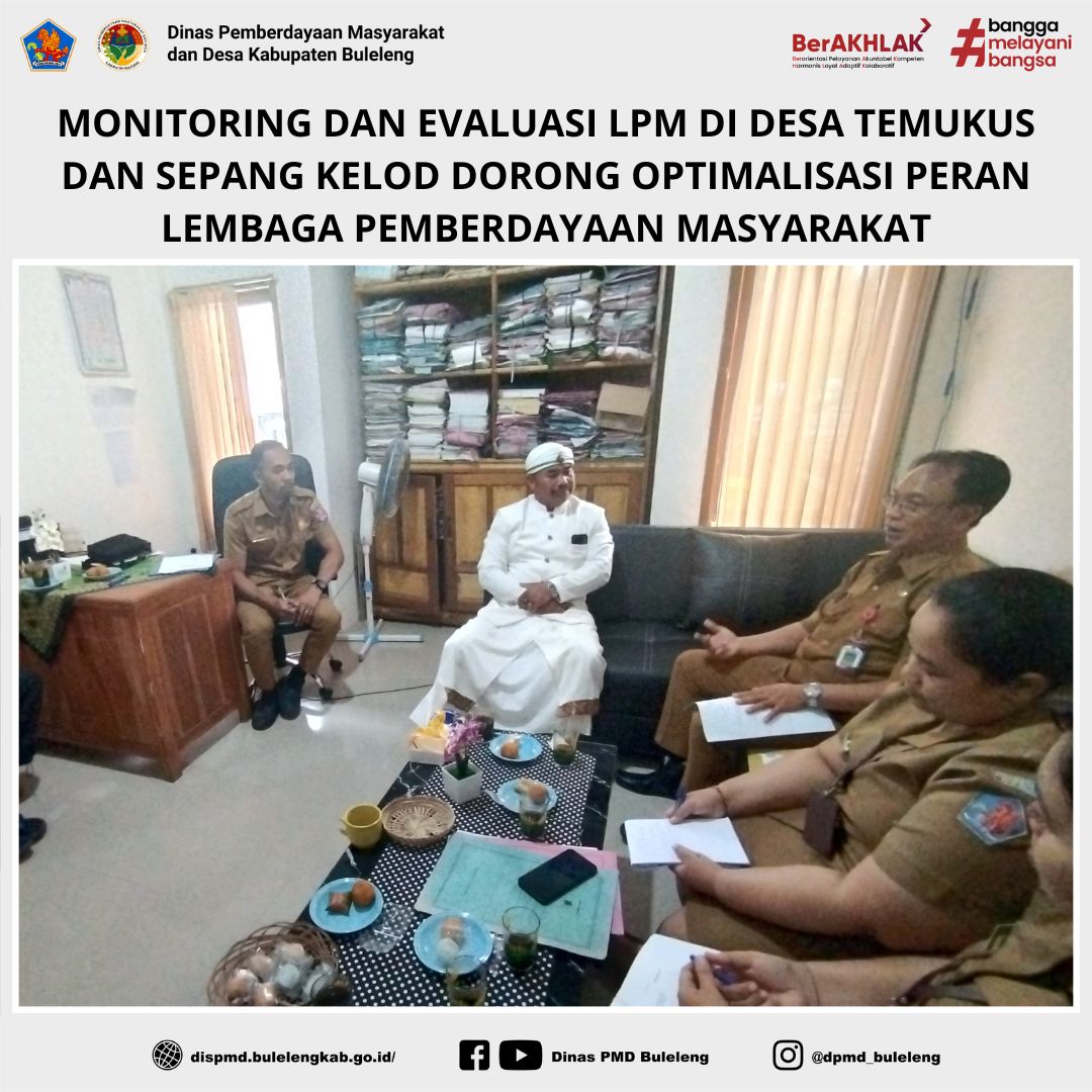 Buleleng, 7 Juli 2025 – Dinas Pemberdayaan Masyarakat dan Desa (PMD) Kabupaten Buleleng melalui Bidang Lembaga Kemasyarakatan Desa, Adat dan Usaha Ekonomi Masyarakat (LKDA UEM) melaksanakan kegiatan monitoring dan evaluasi (monev) terhadap Lembaga Pemberdayaan Masyarakat (LPM) di dua desa, yakni Desa Temukus Kecamatan Banjar dan Desa Sepang Kelod Kecamatan Busungbiu.