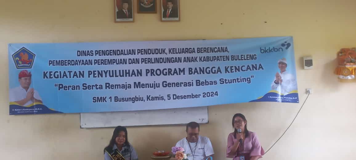 Kegiatan ini dibuka oleh Kepala Wakasek SMK Negeri 1 Busungbiu dan dilanjukan arahan sakaligus pemateri oleh Puspaga santhi dan Duta GenRe dalam memberikan materi dengan Tema " Peran Serta Remaja Menuju Generasi Bebas Stunting". Turut hadir pada kesempatan ini peserta dari Keluarga yang mempunyai Remaja Usia 10-24 Tahun yang belum menikah, Remaja dengan usia 10-24 Tahun yang belum Menikah.