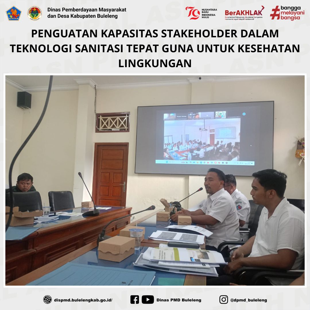 Buleleng, 20 November 2024 – Kepala Bidang Lembaga Kemasyarakatan Desa, Adat, dan Usaha Ekonomi Masyarakat (LKDA-UEM), Ni Made Banu Deviati, menghadiri kegiatan bertajuk "Penguatan Kapasitas Stakeholder dalam Pemanfaatan Teknologi Sanitasi Tepat Guna untuk Kesehatan Lingkungan" yang berlangsung di Ruang Rapat Dinas Pekerjaan Umum (PU) Kabupaten Buleleng.