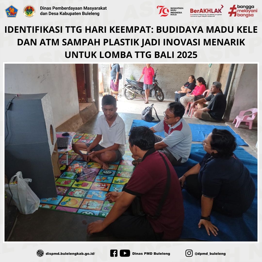 Buleleng, 7 November 2024 – Tim Bidang Lembaga Kemasyarakatan Desa, Adat, dan Usaha Ekonomi Masyarakat (LKDA-UEM) Dinas PMD Kabupaten Buleleng melanjutkan tahap Identifikasi dan Inventarisasi Teknologi Tepat Guna (TTG) guna mempersiapkan lomba TTG tingkat Provinsi Bali tahun 2025. Pada hari keempat ini, tim yang dipimpin oleh Kabid LKDA-UEM, Ni Made Banu Deviati, didampingi oleh Fungsional Penggerak Swadaya Masyarakat (PSM), Dewa Nyoman Suarjana Putra, serta staf LKDA-UEM, mengunjungi Desa Les, Kecamatan Tejakula dan Desa Tamblang, Kecamatan Kubutambahan.