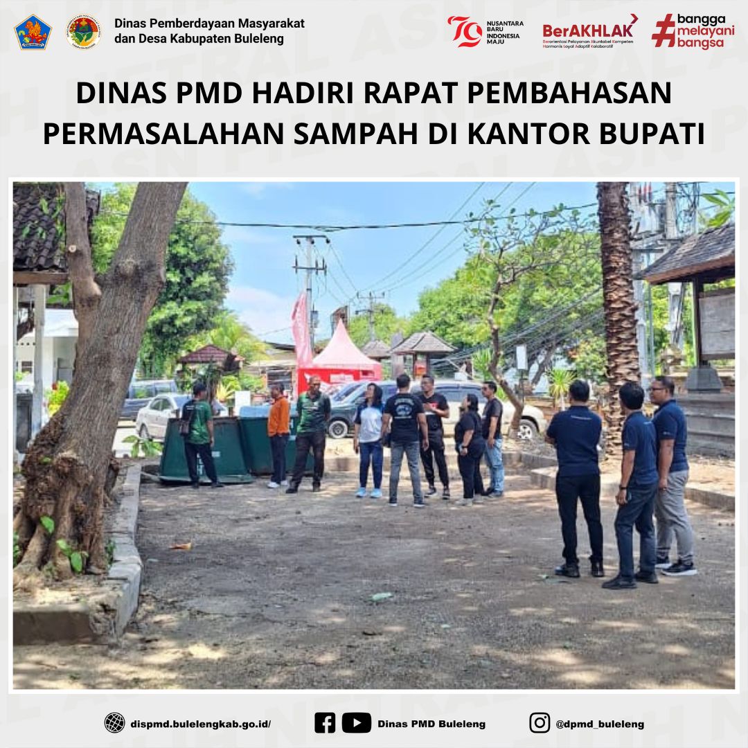 Buleleng, 21 Februari 2025 – Dinas Pemberdayaan Masyarakat dan Desa (PMD) Kabupaten Buleleng yang diwakili oleh Kepala Bidang Lembaga Kemasyarakatan Desa, Adat, dan Usaha Ekonomi Masyarakat (LKDA UEM), Ni Made Banu Deviati, menghadiri rapat pembahasan terkait permasalahan sampah di lingkungan Kantor Bupati Buleleng.
