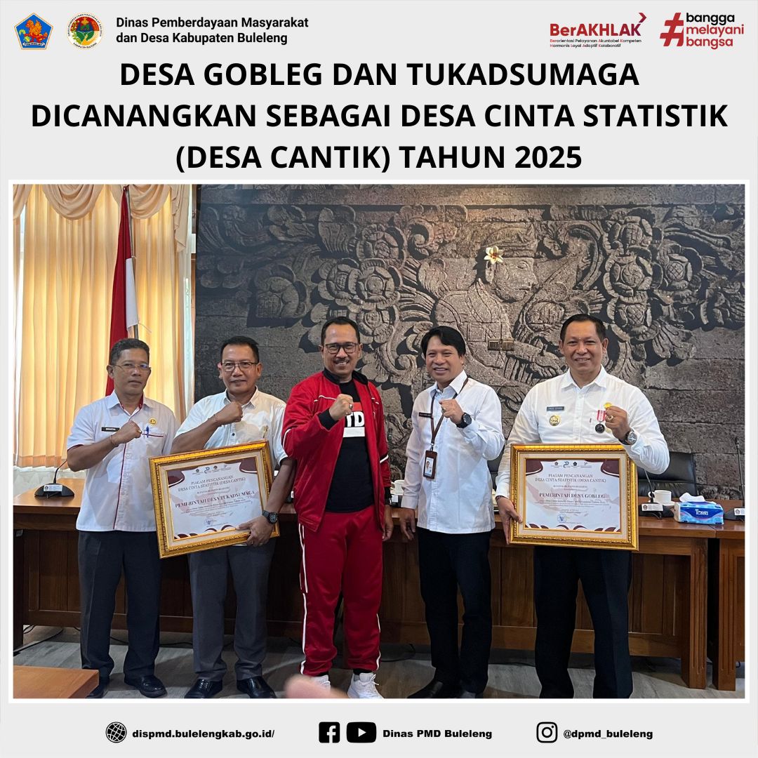 Dua desa yang dicanangkan sebagai peserta Lomba Desa Cantik Tahun 2025 adalah Desa Gobleg dan Desa Tukadsumaga. Dalam kegiatan ini, masing-masing desa diwakili oleh Perbekel dan Agen Statistik Desa, dengan Desa Tukadsumaga diwakili oleh Sekretaris Desa.