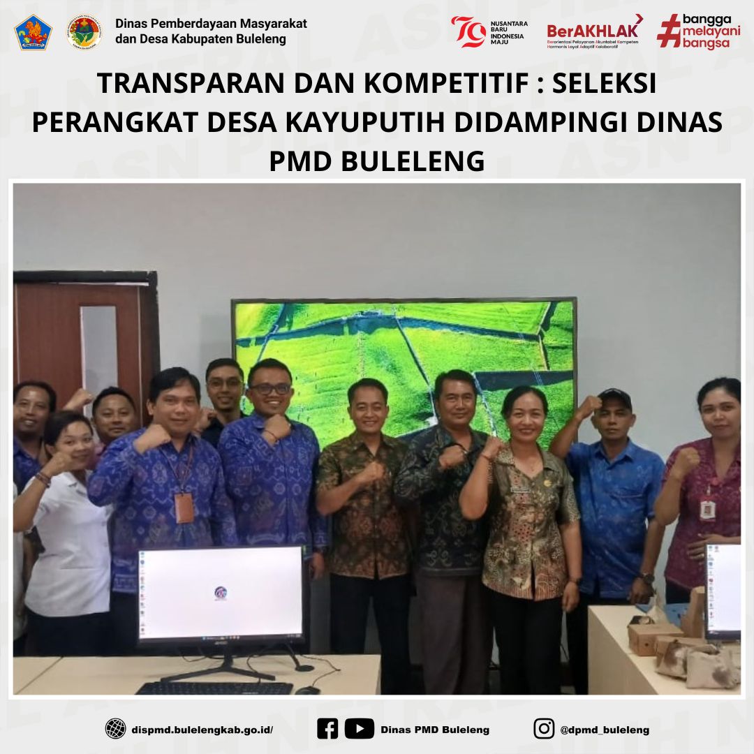 Seleksi ini bertujuan untuk memilih Kepala Seksi Pelayanan Desa Kayuputih. Tes diikuti oleh 3 orang peserta, dengan proses seleksi yang terdiri dari 3 tahap, yaitu tes tulis dengan bobot nilai 30%, tes komputer dengan bobot nilai 40%, tes wawancara dengan bobot nilai 30%. Tes wawancara telah dilaksanakan pada hari Senin, 24 Februari 2025 bertempat di Kantor Kepala Desa Kayuputih, panelis wawancara dari pihak Perbekel Desa Kayuputih, Ketua BPD Desa Kayuputih, dan Bhabinkamtibmas Desa Kayuputih.