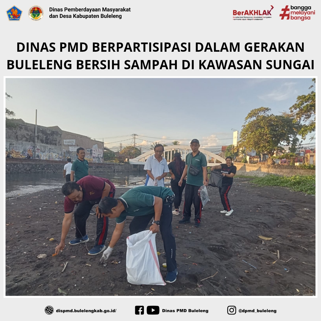 Kegiatan bersih-bersih sungai kali ini dilaksanakan serentak di dua titik, yakni di Sungai Banyumala, Kelurahan Banyuasri, serta di Sungai Buleleng, Kelurahan Banjar Bali. Dinas Pemberdayaan Masyarakat dan Desa (PMD) turut berpartisipasi dalam kegiatan ini dengan menugaskan 10 orang pegawainya untuk mengikuti pembersihan di lokasi Sungai Buleleng, dengan titik kumpul di kawasan eks Pelabuhan Buleleng.