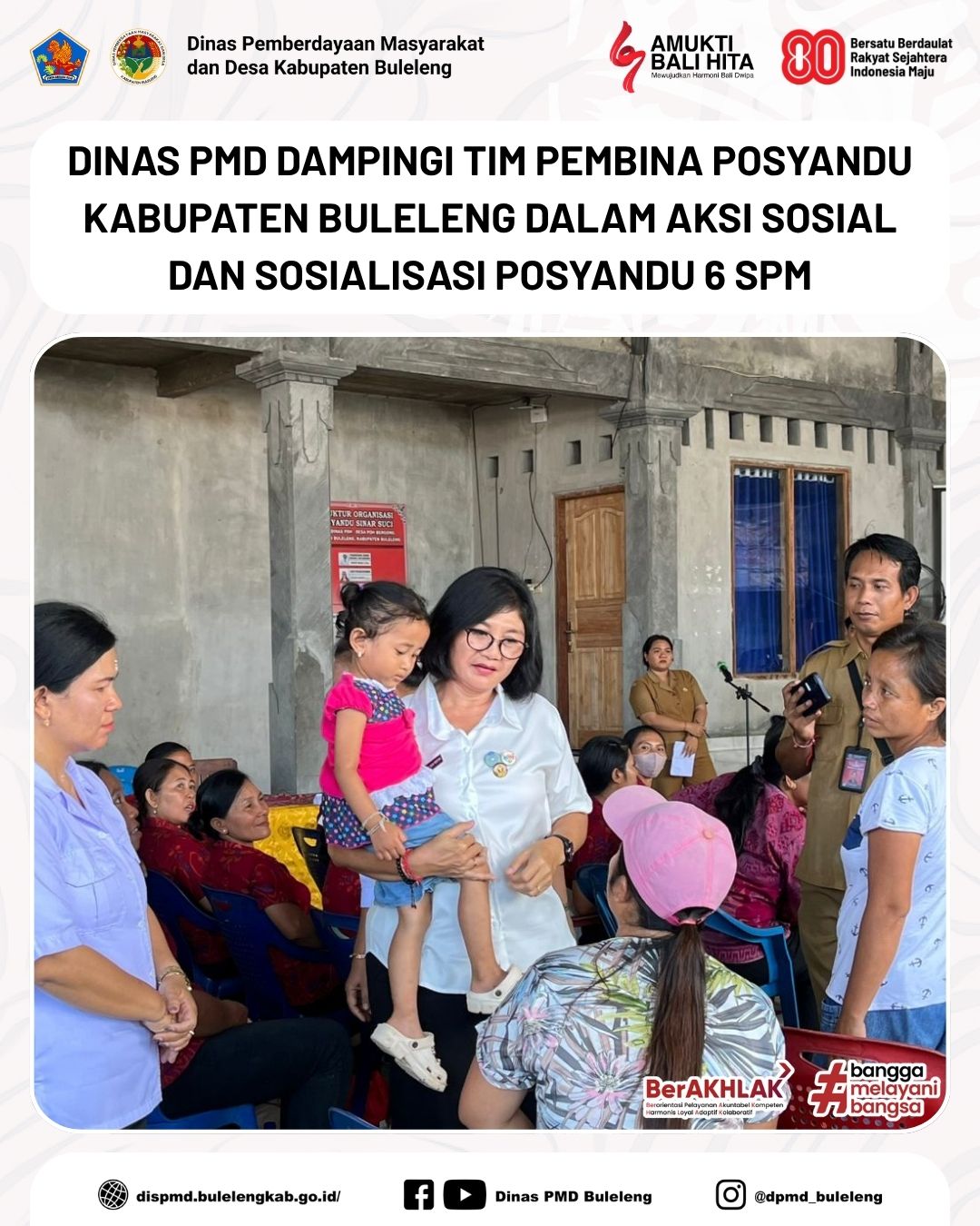 Buleleng, 13 Oktober 2025 - Dinas Pemberdayaan Masyarakat dan Desa (PMD) Kabupaten Buleleng turut mendampingi Tim Pembina Posyandu Kabupaten Buleleng dalam kegiatan bertajuk “Aksi Sosial dan Sosialisasi Posyandu 6 SPM” yang dilaksanakan di dua desa, yakni Desa Sambirenteng, Kecamatan Tejakula dan Desa Poh Bergong, Kecamatan Buleleng.