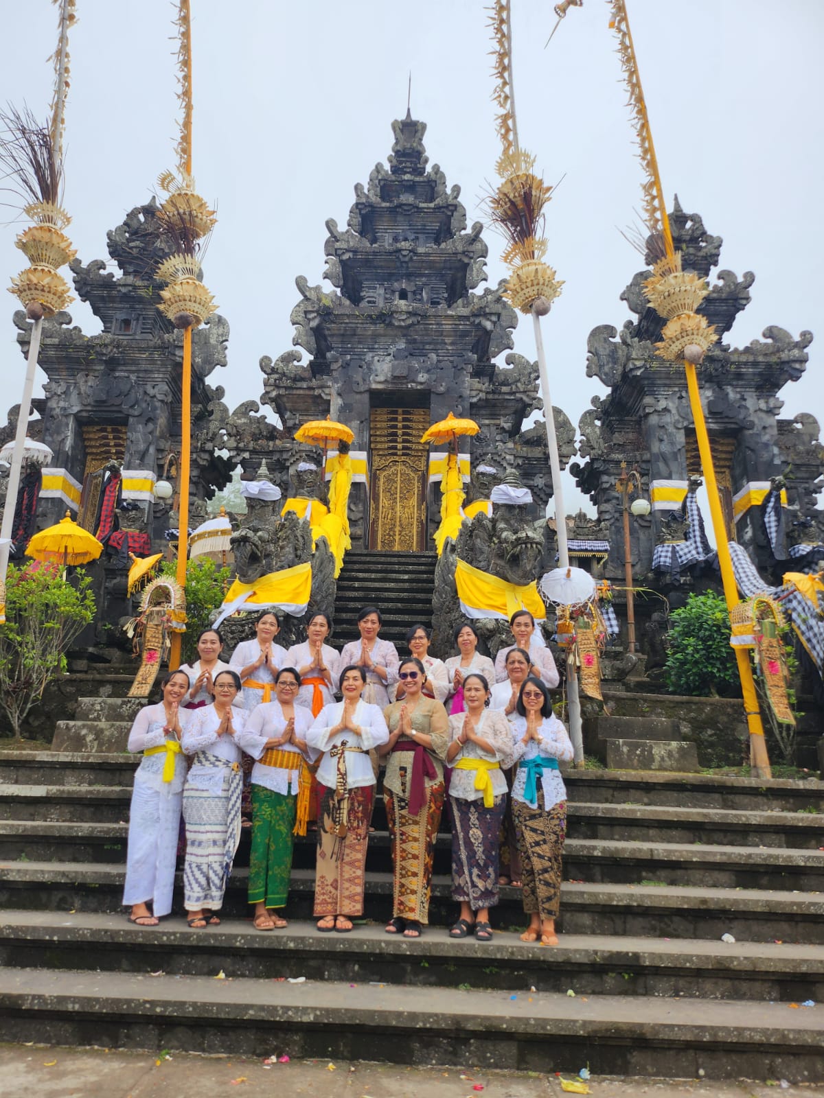 Serangkaian menyambut Hari Ulang Tahun (HUT) Dharma Wanita Persatuan (DWP) ke-25, Ketua Dharma Wanita Persatuan (DWP) Dinas P2KBP3A Kabupaten Buleleng di dampingi Kabid P3, Pejabat Fungsional, menghadiri Persembahyangan/Pujawali dalam rangka. Muspayang Bakti Pujawali pada Pura Pasar Agung dan Melanting Kab. Karangasem