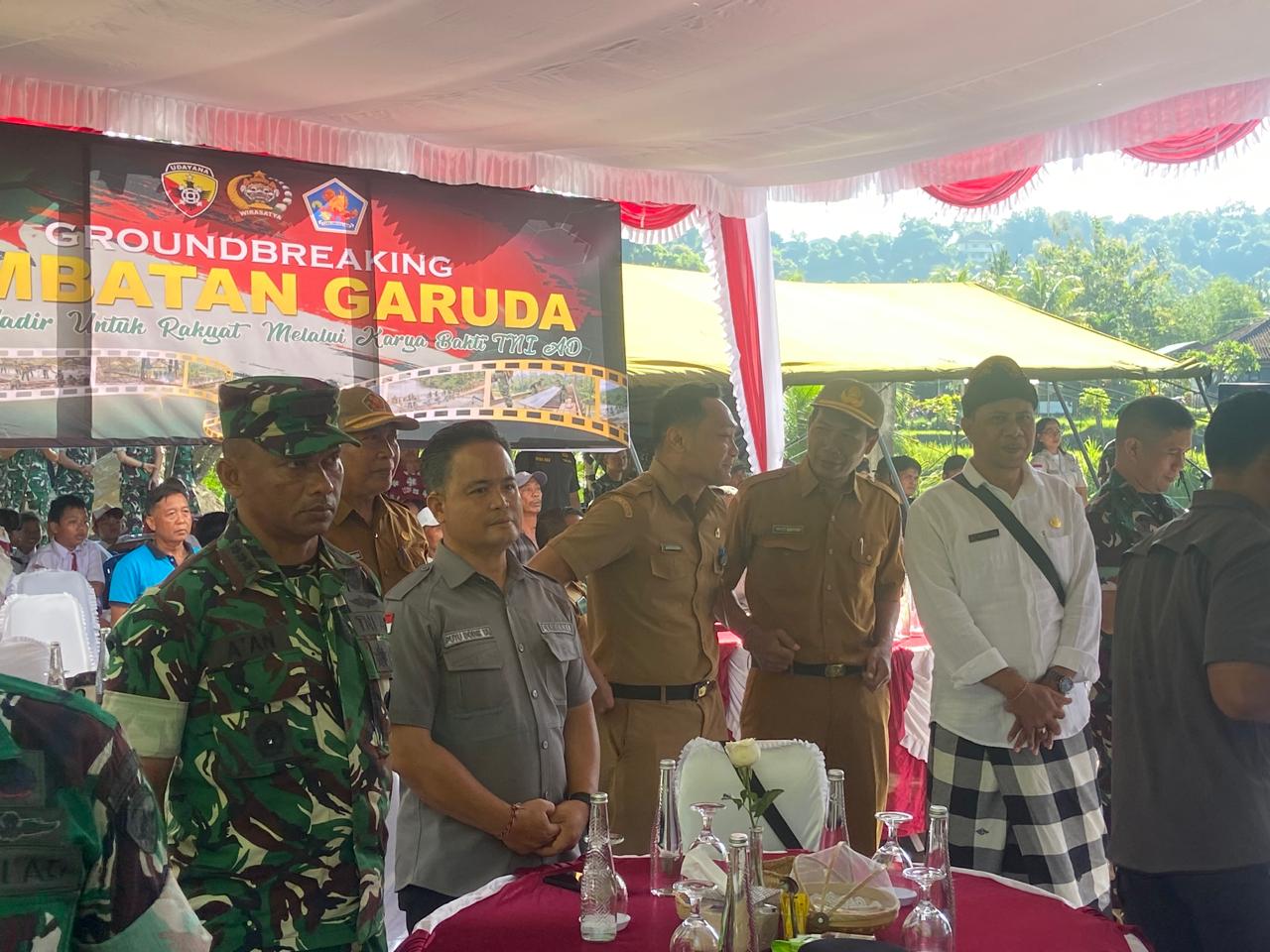 Kegiatan dilanjutkan dengan sambutan Kasdam IX/Udayana Brigjen TNI Taufiq Hanafi sekaligus pelaksanaan peletakan batu pertama (groundbreaking). Dalam sambutannya disampaikan bahwa Program Pembangunan Jembatan Garuda merupakan bagian dari komitmen TNI Angkatan Darat dalam mendukung percepatan pembangunan nasional. Program ini telah memasuki tahap 3 dan 4 dengan total 376 titik di seluruh Indonesia.