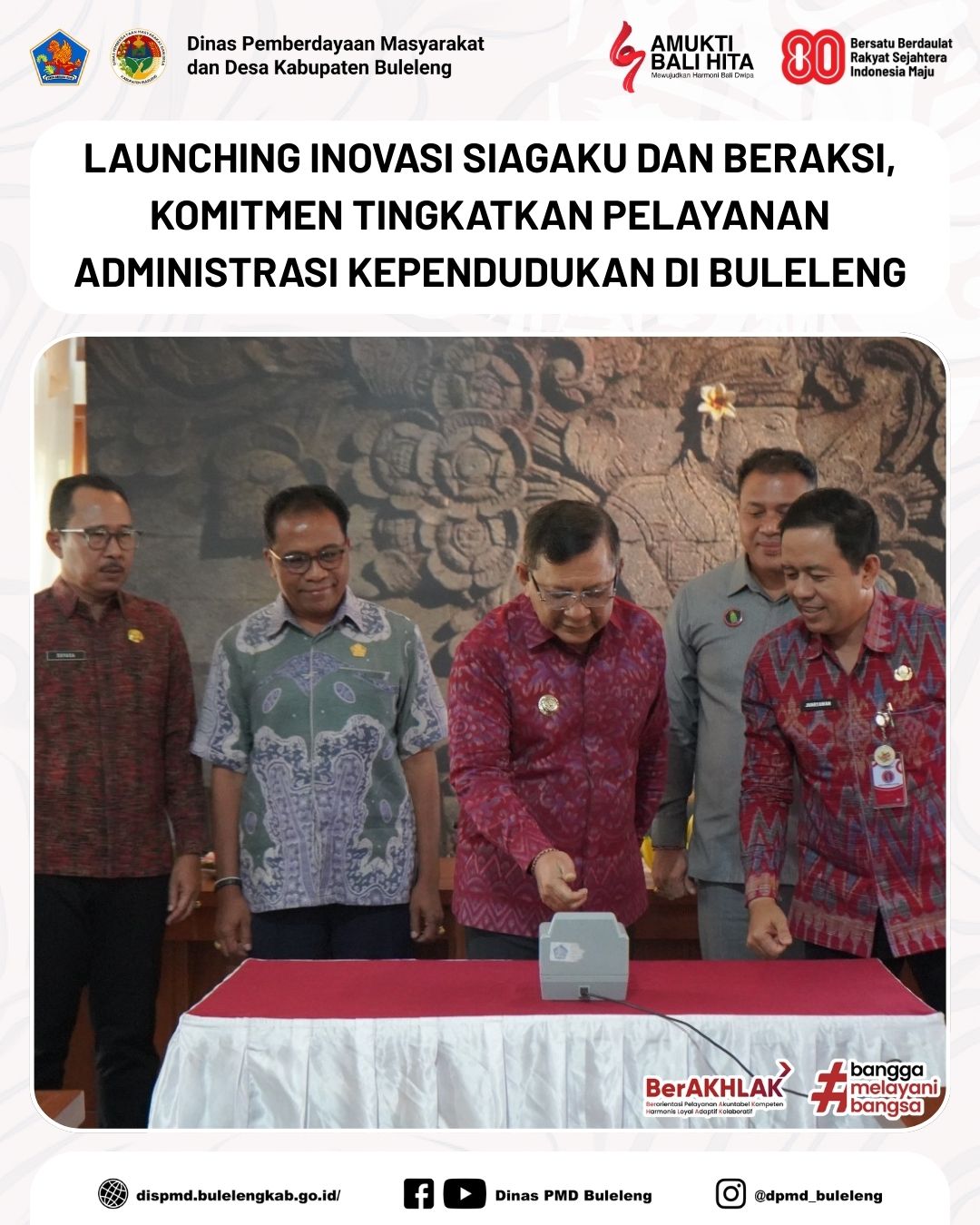 Dalam sambutannya, Kepala Dinas Dukcapil Kabupaten Buleleng, Made Juartawan, selaku ketua panitia, menjelaskan bahwa Disdukcapil berkomitmen untuk terus meningkatkan pelayanan administrasi kependudukan. Hal inilah yang melahirkan inovasi SIAGAKU dan BERAKSI. SIAGAKU memberikan layanan administrasi singkat seperti pengesahan perkawinan, dispensasi perkawinan, hingga perubahan nama, sedangkan BERAKSI merupakan pelayanan jemput bola untuk membantu masyarakat menyelesaikan permasalahan dokumen kependudukan secara langsung.