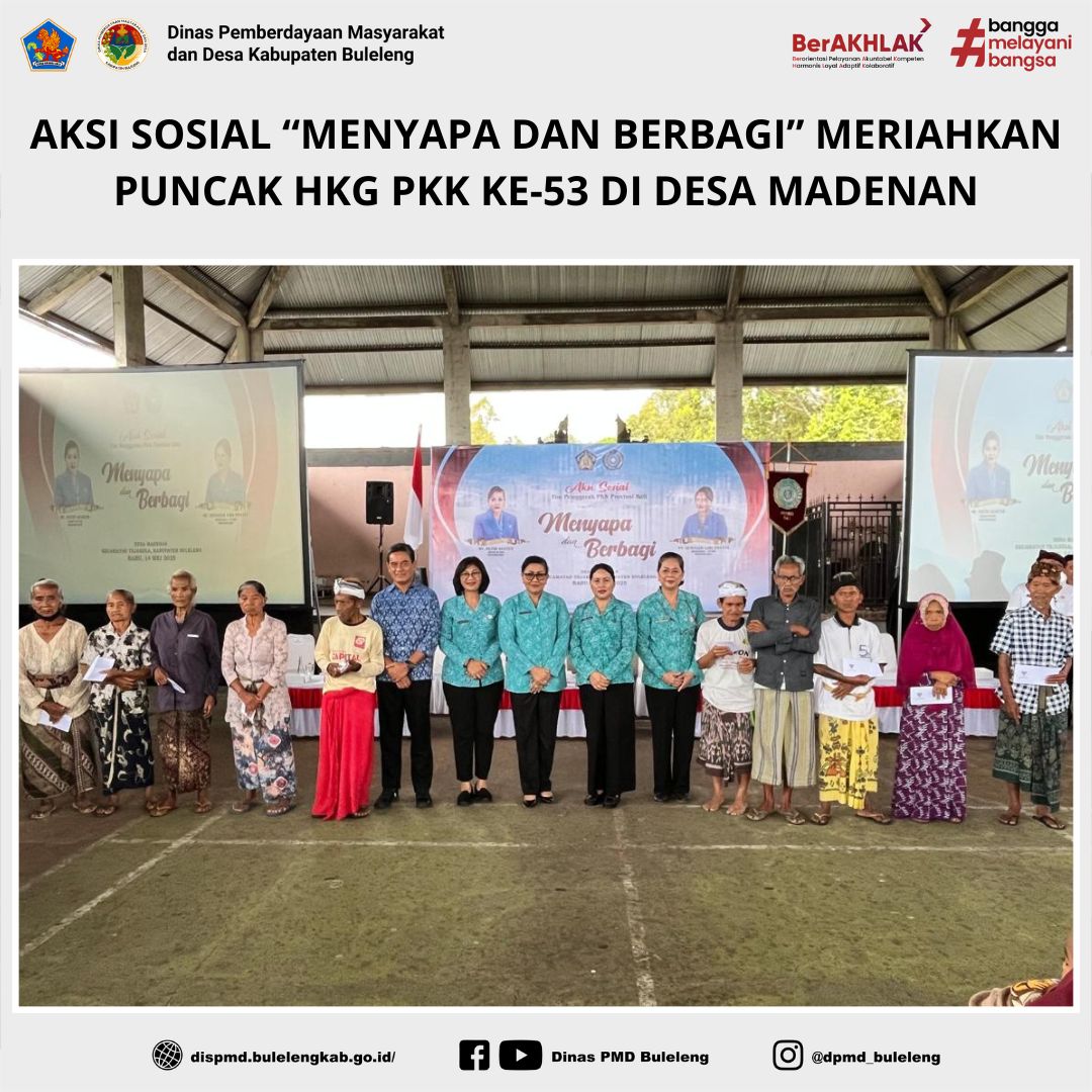 Buleleng, 14 Mei 2025 – Dalam rangka puncak peringatan Hari Kesatuan Gerak (HKG) PKK ke-53 tingkat Provinsi Bali Tahun 2025, digelar kegiatan “Menyapa dan Berbagi” yang dipusatkan di Desa Madenan, Kecamatan Tejakula, Rabu (14/5).