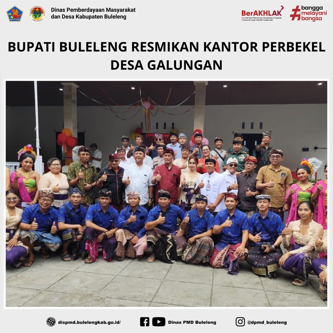Buleleng, 31 Mei 2025 – Bupati Buleleng, Nyoman Sutjidra, bersama Wakil Bupati Gede Supriatna, menghadiri sekaligus meresmikan Kantor Perbekel Desa Galungan pada Sabtu (31/5). Dalam kegiatan ini, Bupati didampingi oleh Plt. Kepala Dinas Pemberdayaan Masyarakat dan Desa (PMD) Kabupaten Buleleng, Nyoman Widiartha.
