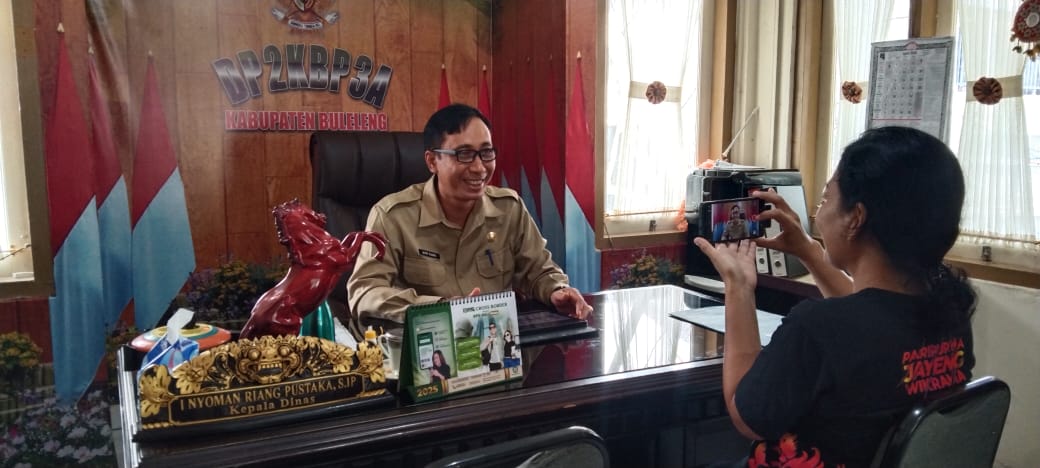 Dinas Pengendalian Penduduk Keluarga Berencana, Pemberdayaan Perempuan dan Perlindungan Anak, (P2KBP3A) Kabupaten Buleleng menerima kunjungan kerja dari tim Bali TV pada hari Senin (26/5), bertempat di Ruang Kepala Dinas P2KBP3A.