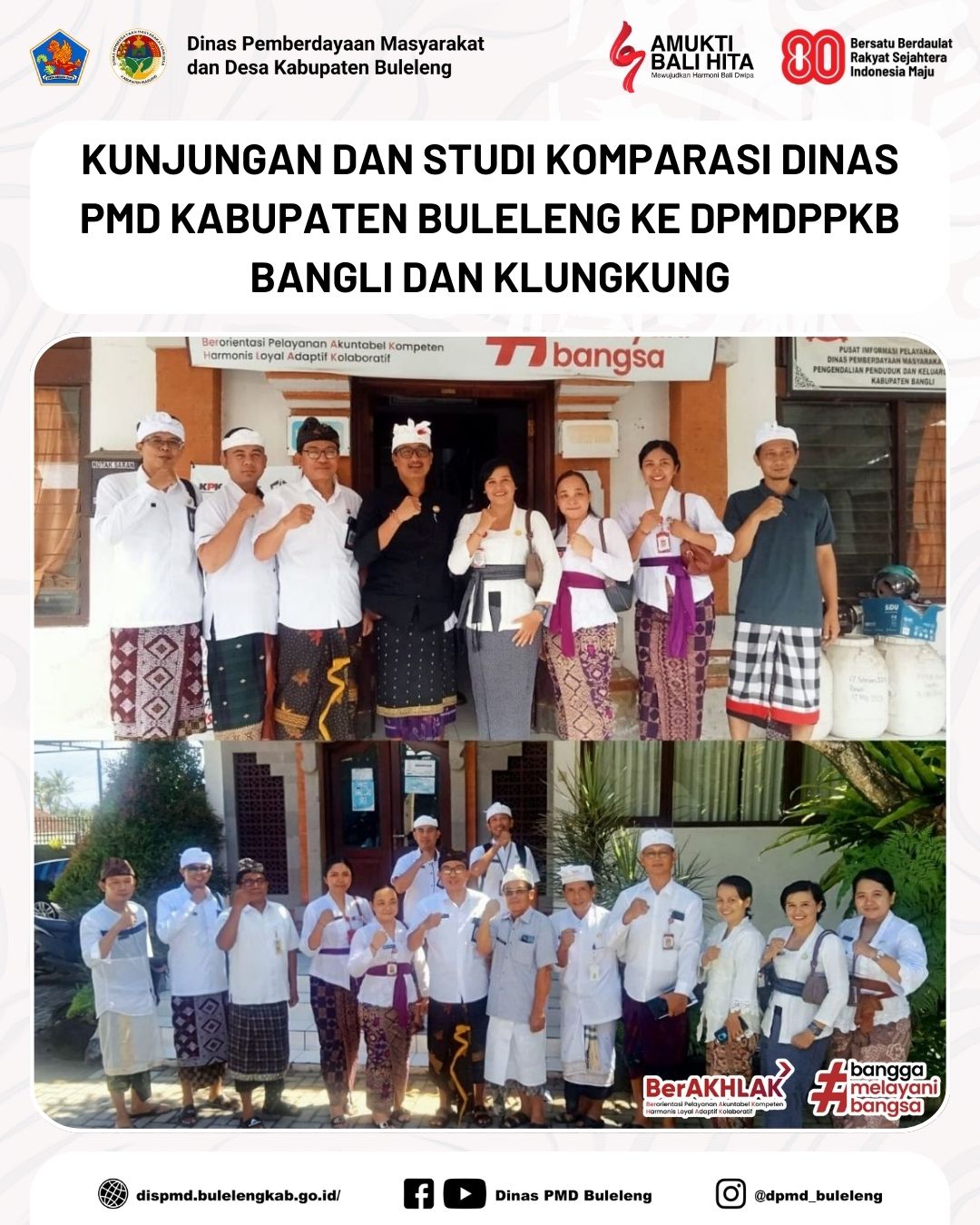 Perwakilan Dinas PMD Kabupaten Buleleng melaksanakan kegiatan kunjungan dan studi komparasi ke dua daerah, yaitu DPMDPPKB Kabupaten Bangli dan Kabupaten Klungkung, pada hari Kamis (4/12) kemarin. Tim terdiri dari Kasubbag Umum Sekretariat, Made Desi Widiarsini, S.E. beserta staf, serta Kepala Bidang Pemerintahan Desa, Madong Hartono, S.Pd. bersama staf.