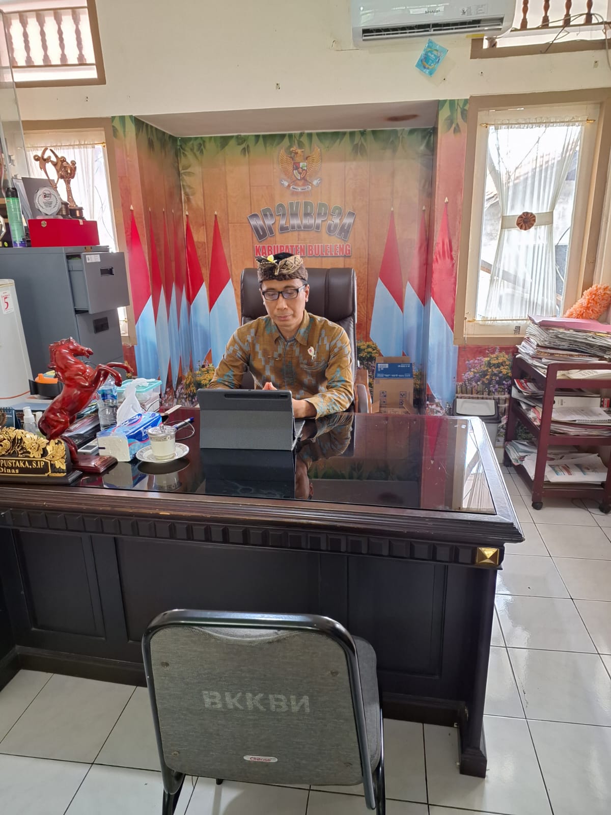 Kepala Dinas P2KBP3A Kabupaten Buleleng I Nyoman Riang Pustaka S.IP mengikuti Zoom Meeting tentang Pelaksanaan Peluncuran Gerakan Orang Tua Asuh Cegah Stunting (GENTING)