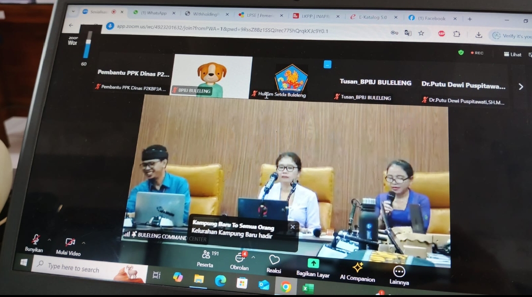Dinas P2KBP3A Kabupaten Buleleng Ketut Darmawan, S.Pd selaku Staf Adminitrasi Perpajakan mengikuti Zoom Meeting tentang Sosialisasi e-purchasing