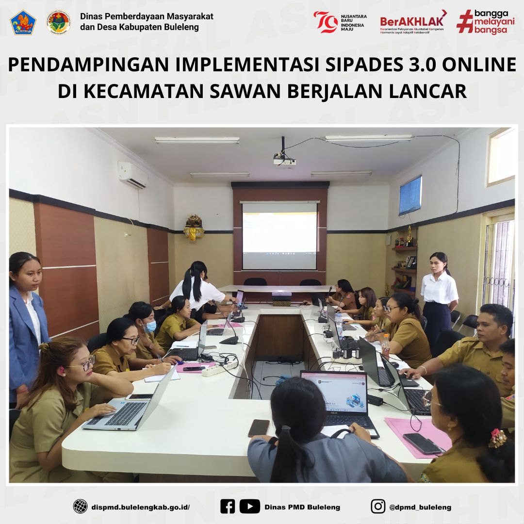 Buleleng, 28 Oktober 2024 - Hari ke-7 Pendampingan Implementasi Sipades 3.0 Online Kabupaten Buleleng telah dilaksanakan, dengan melibatkan desa-desa se-Kecamatan Sawan. Kegiatan ini bertempat di Ruang Rapat Dinas PMD Kabupaten Buleleng dan berlangsung dengan tertib serta lancar.