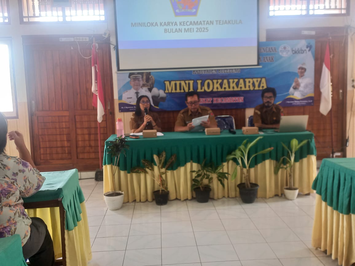 Senin, 26 Mei 2025 - Bertempat di Kantor Camat Tejakula Dinas P2KBP3A Kabupaten Buleleng melaksanakan kegiatan Mini Loka Karya Tingkat Kecamatan yang dilaksanakan di Gedung Serbaguna dalam rangka upaya pencegahan Stunting yang bersifat multidimensional maka diperlukan adanya jaminan bahwa semua target sasaran prioritas program dapat mengakses dan memanfaatkan sejumlah layanan secara lengkap dan optimal. Untuk hal tersebut maka dilakukan evaluasi pelaksanaan pendampingan keluarga dan hasil pemantauan pendampingan keluarga di tingkat kecamatan agar tujuan Strategi Nasional Percepatan Penurunan Stunting sesuai dengan Peraturan Badan Kependudukan dan Keluarga Berencana Nasional Republik Indonesia No.13 Tahun 2023 tentang Petunjuk Teknis Penggunaan Dana Bantuan Operasional Keluarga Berencana Tahun Anggaran 2025. Dimana perlu mengawal dan mengevaluasi pelaksanaan pendampingan keluarga hasil dari pelaksanaan dan pemantauan pendampingan keluarga ditingkat kecamatan, serta pembinaan Tim Pendamping Keluarga (TPK) agar terwujudnya 3 standar yaitu TPK yang terlatih, Tersedia Alat Ukur/Aplikasi Pengukuran untuk sasaran Stunting dan Tersedia serta terlaksananya prosedural operasional percepatan penurunan stunting serta terwujudnya 4 PASTI yaitu memastikan semua sasaran terdata, memastikan semua sasaran memperoleh pelayanan, memastikan semua sasaran memanfaatkan intervensi dari pelayanan dan memastikan semua pelaksanaan dan pendampingan tercatat dan terlaporkan.
