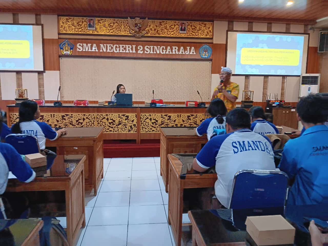 Kegiatan ini di koordinir langsung oleh Perwakilan Kepala Sekolah SMA N 2 Singaraja dan dilanjukan arahan sakaligus pemateri oleh Kemenag Kab.Buleleng I Ketut Ariawan, S.H., M.PdH serta turut di hadiri Forum Genre//Peserta dari siswa/siswi SMA N 2 Singaraja