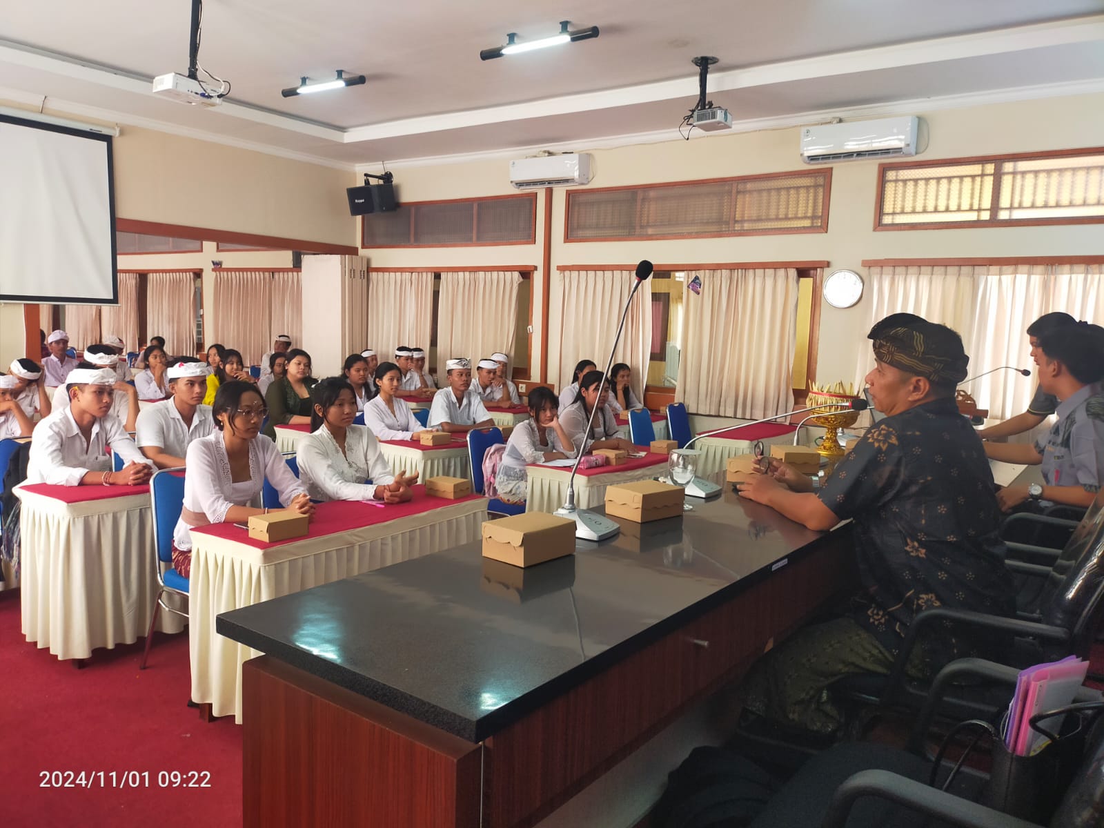 Kegiatan ini di koordinir langsung oleh Perwakilan Kepala Sekolah SMA N 2 Singaraja dan dilanjukan arahan sakaligus pemateri oleh Kemenag Kab.Buleleng I Ketut Ariawan, S.H., M.PdH serta turut di hadiri Forum Genre//Peserta dari murid SMK N 1 Singaraja